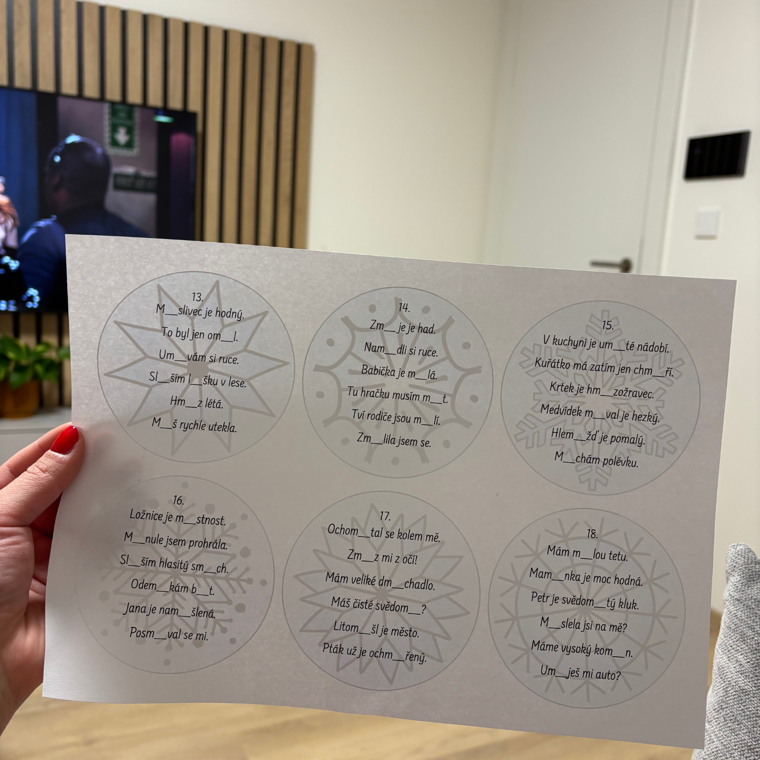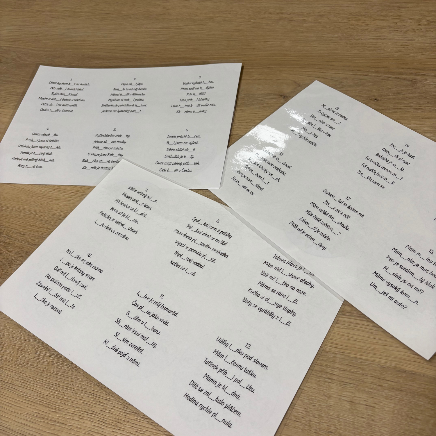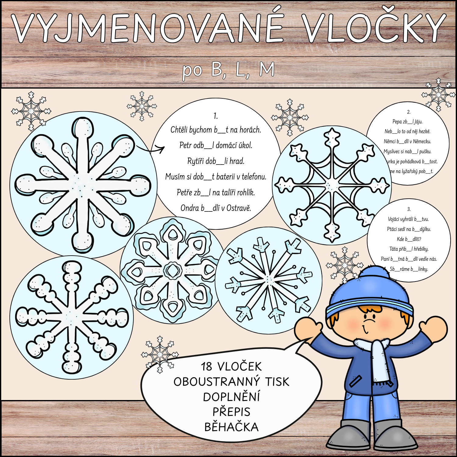 Vyjmenované vločky po B, L, M - doplňování, přepis, běhačka