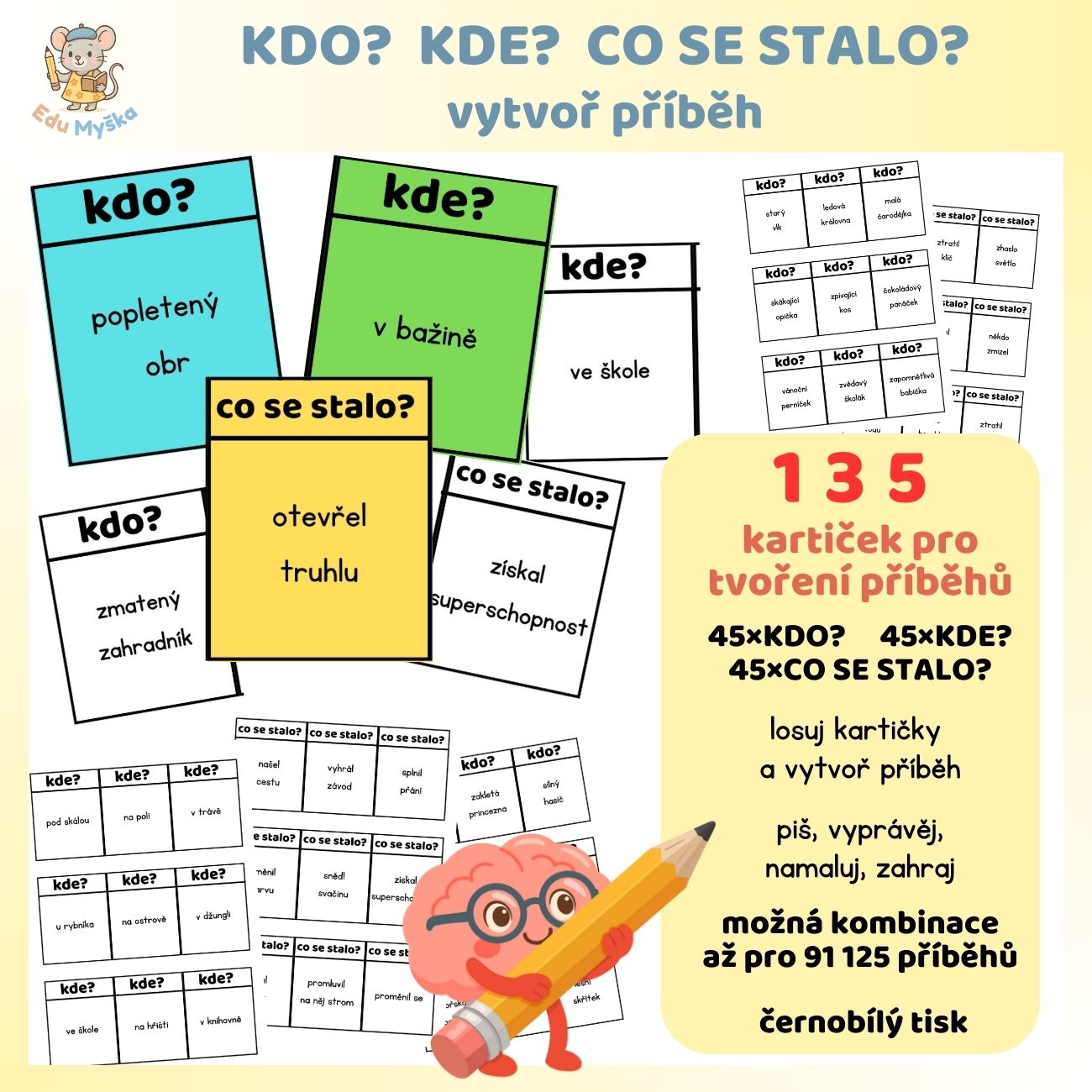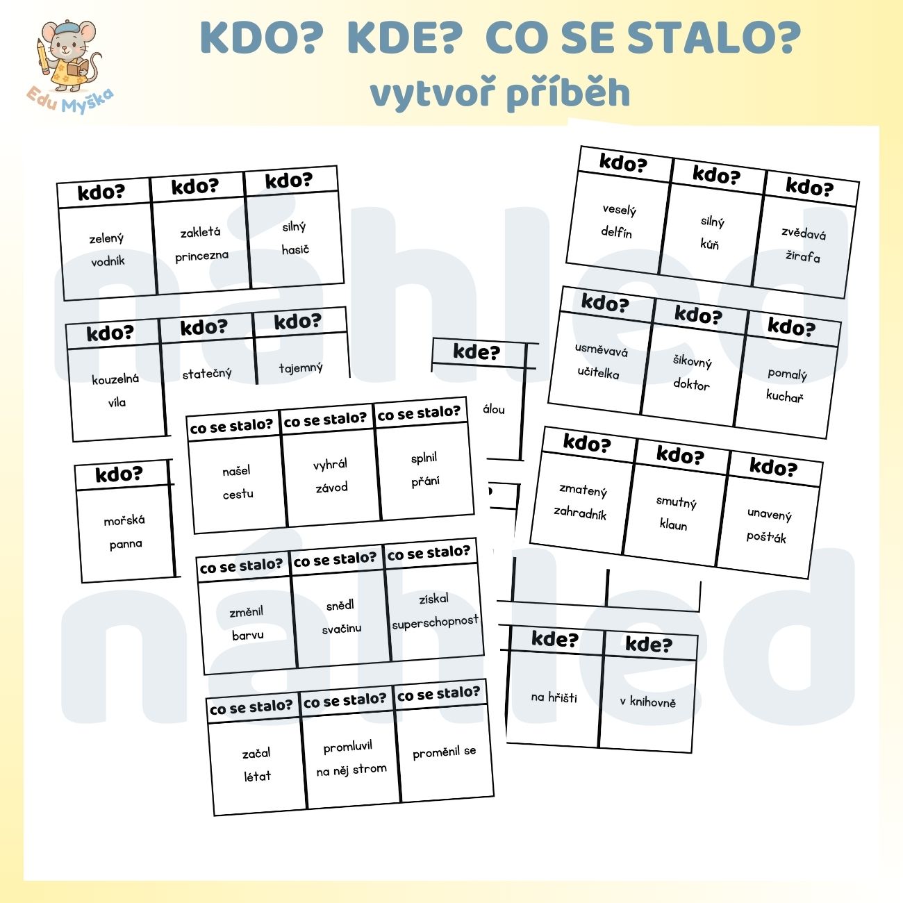 Soubor obsahuje 3×45 kartiček pro skládání příběhů.