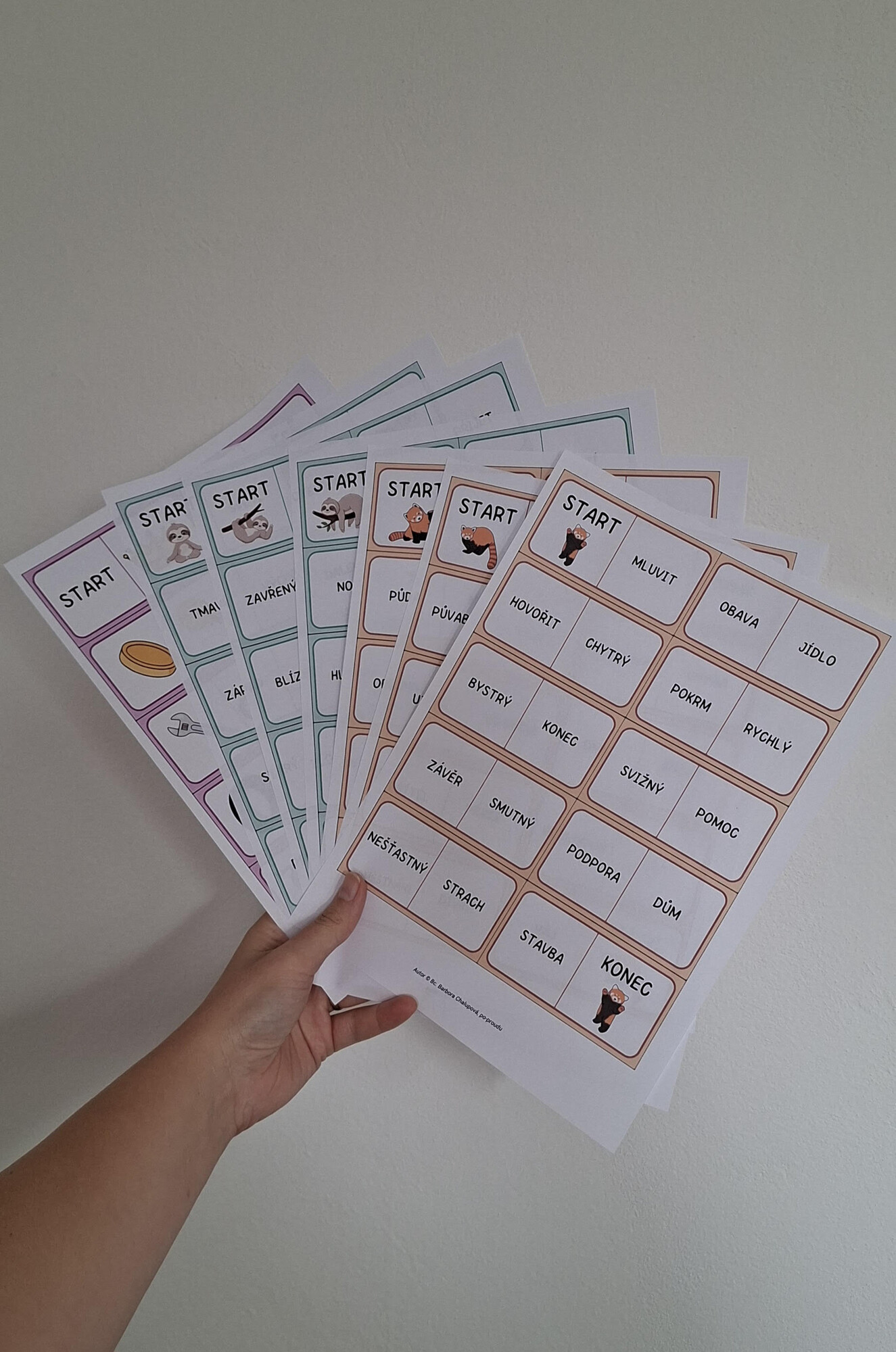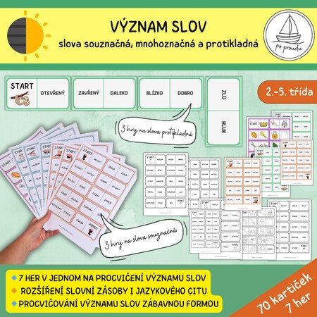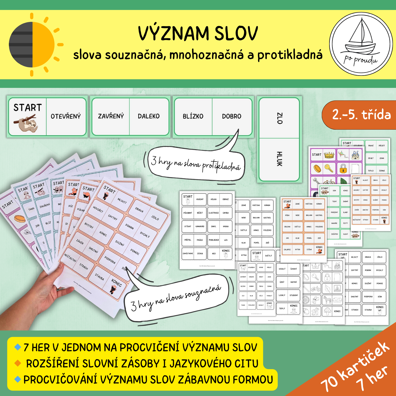 - 3 hry na slova souznačná – rozšiřování slovní zásoby, práce se synonymy.