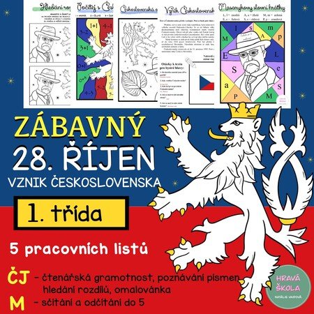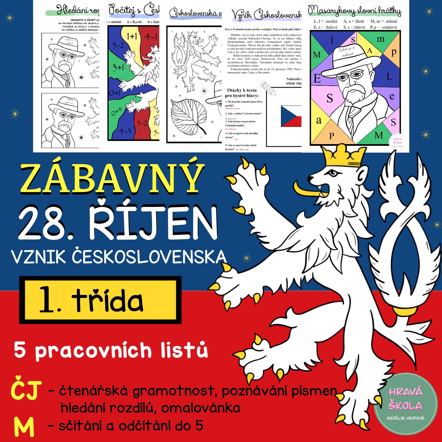 🇨🇿 MATERIÁL obsahuje 5 PL s TÉMATIKOU VZNIKU ČESKOSLOVENSKA 28. ŘÍJNA do ČJ a M pro 1. TŘÍDU