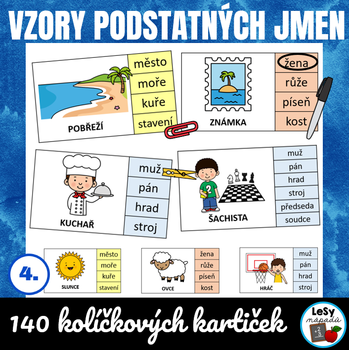 • 40 kartiček obsahuje vzory rodu ženského, tj. 4 x 10 kartiček
