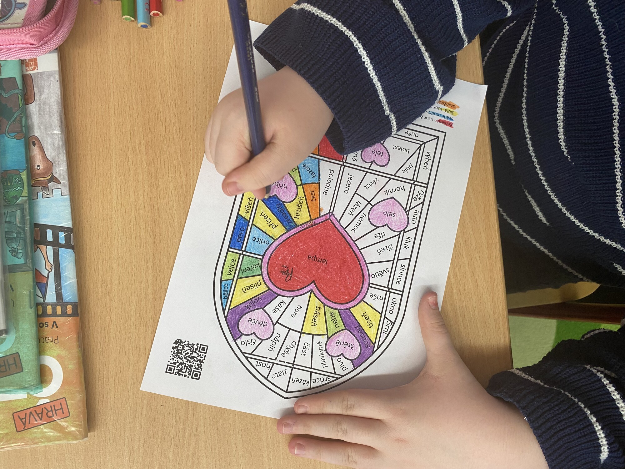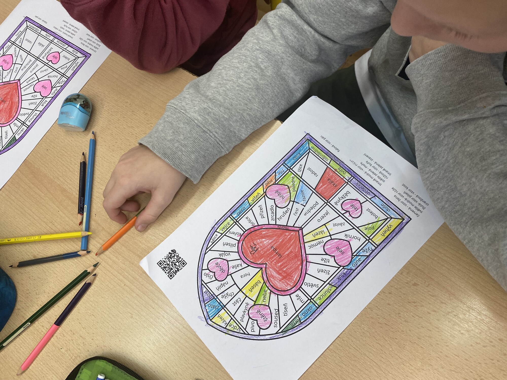 Chtěla jsem je zaujmout a ukázat jim, že i pravopis se dá učit jinak než jen psaním do sešitu. Všechny víme, že děti baví, když mohou něco tvořit, skládat, vybarvovat. Právě proto jsem se snažila propojit učivo o rodech a vzorech podstatných jmen s tvořivou činností.