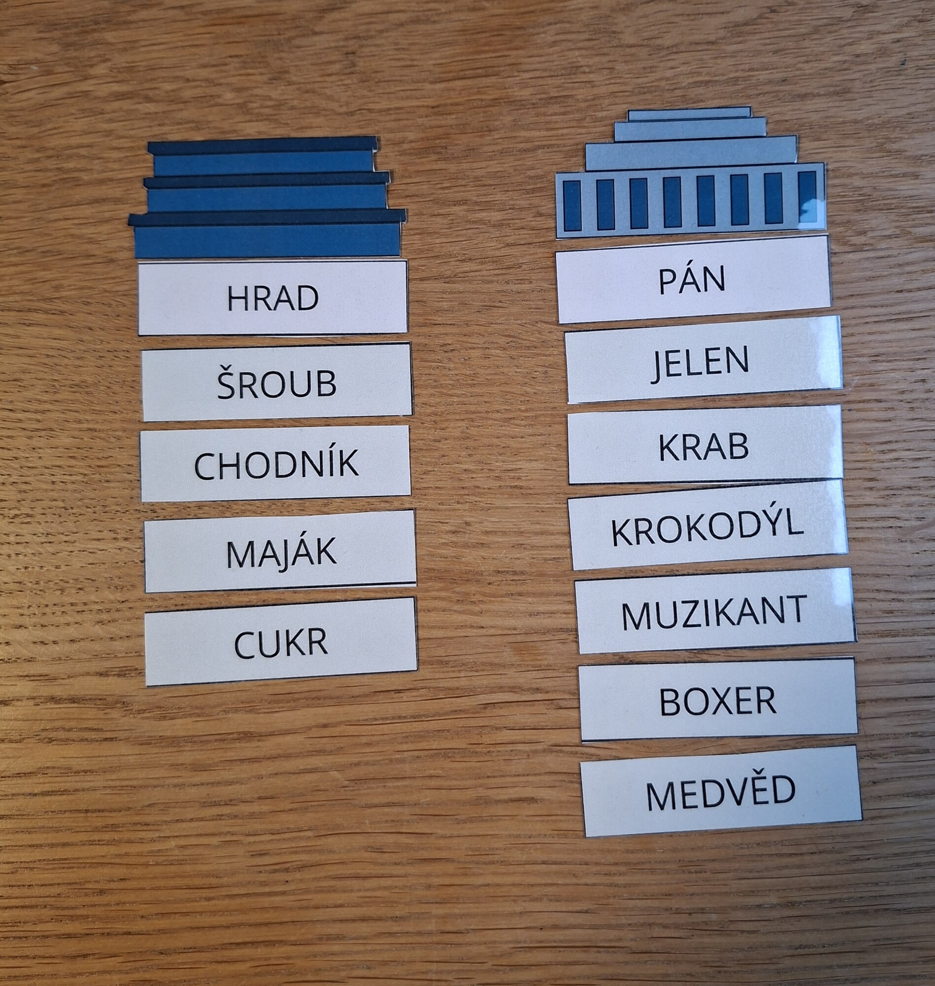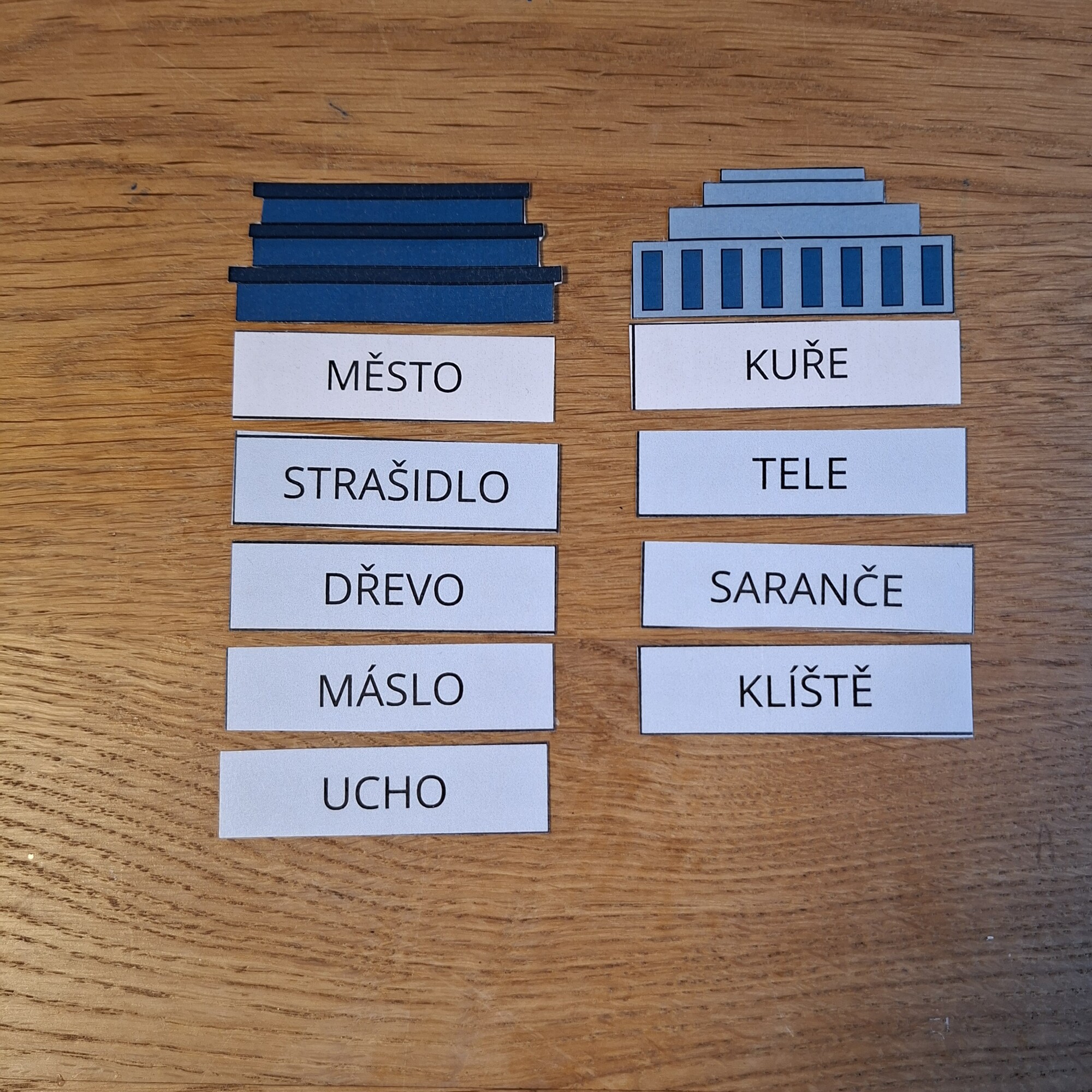 - střechy a základny mrakodrapů pro názorné třídění slov