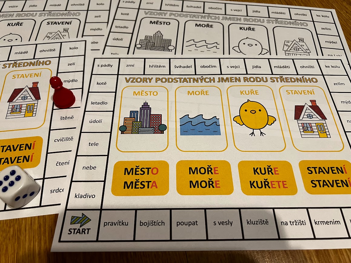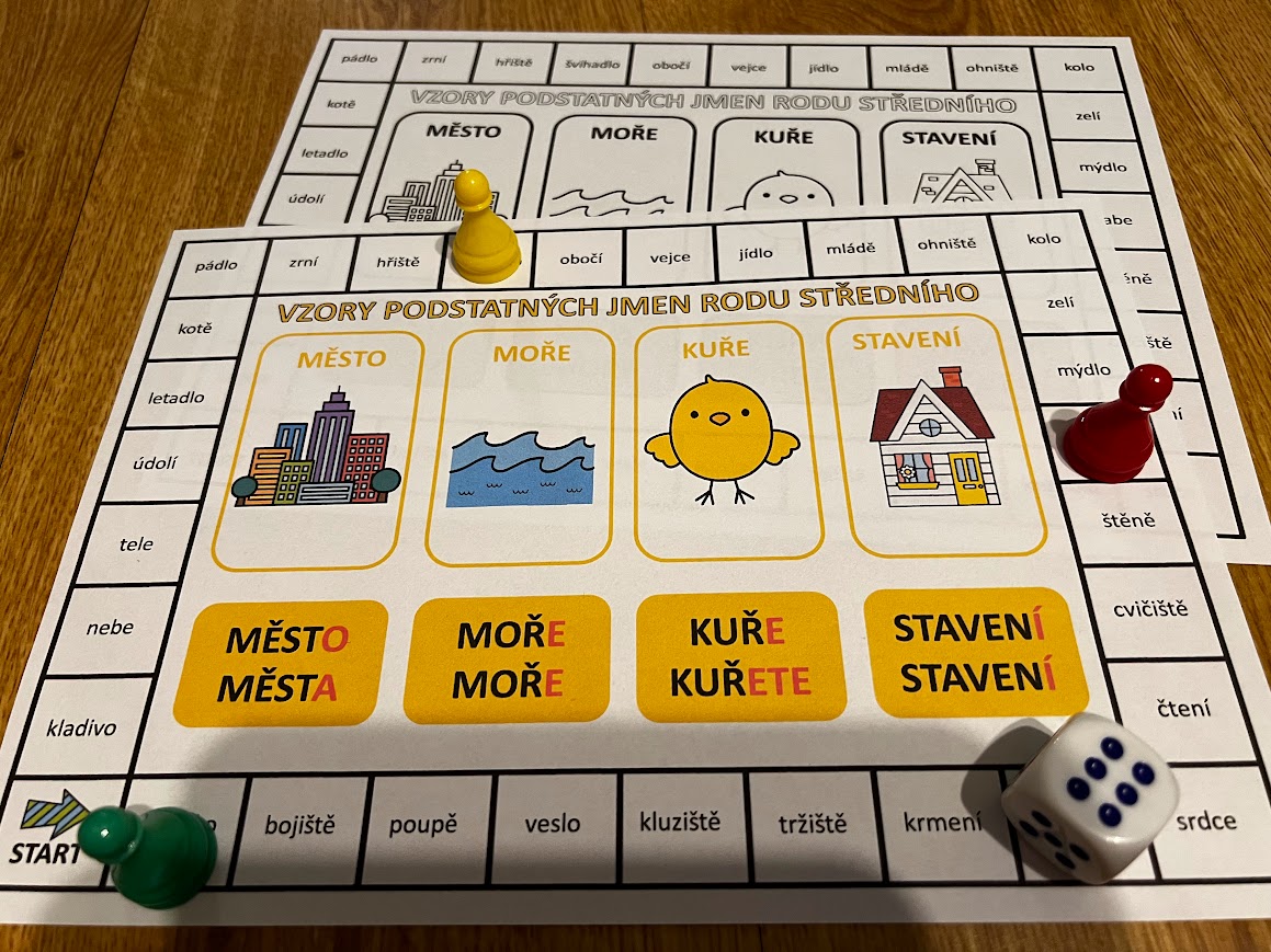 •1 desková hra v barevné i čb verzi slouží k určení vzorů podstatných jmen (podstatná jména jsou v 1. pádu čísla jednotného) – snazší varianta