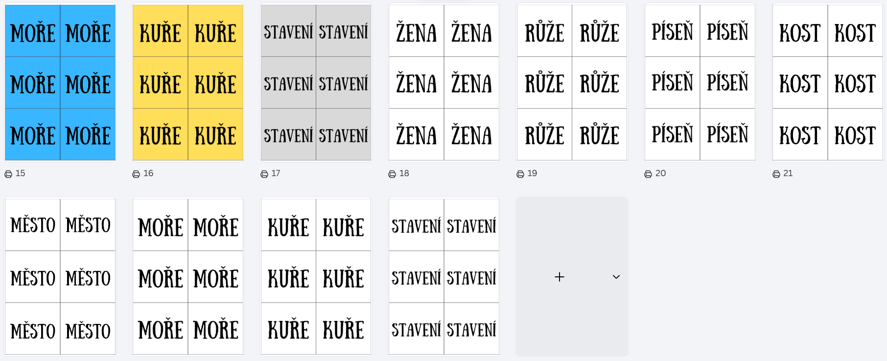 - 8 sad hlasovátek po šesti v barevné i černobílé verzi