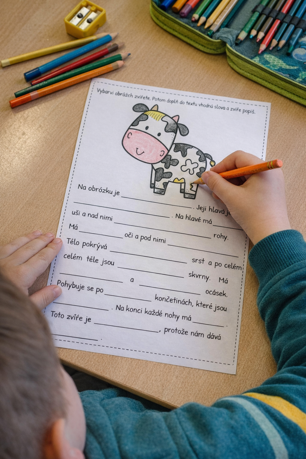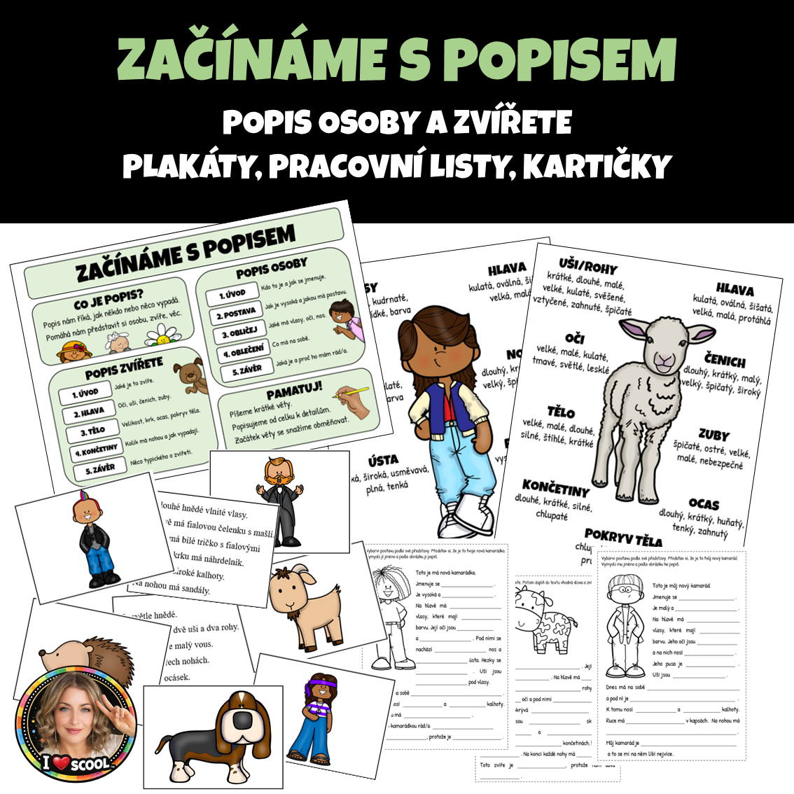 Materiál pomáhá dětem osvojit si základní principy popisu osoby a zvířete jednoduchou a přehlednou formou. Výukové plakáty žákům názorně ukazují, jak při popisu postupovat a jaká slova mohou při popisu používat. Kartičky s obrázky a texty umožňují procvičovat čtení s porozuměním a rozpoznávání znaků popisované osoby či zvířete. Pracovní listy vedou žáky k samostatnému tvoření popisu podle jednoduché osnovy a podporují rozvoj slovní zásoby i schopnost formulovat krátké věty.