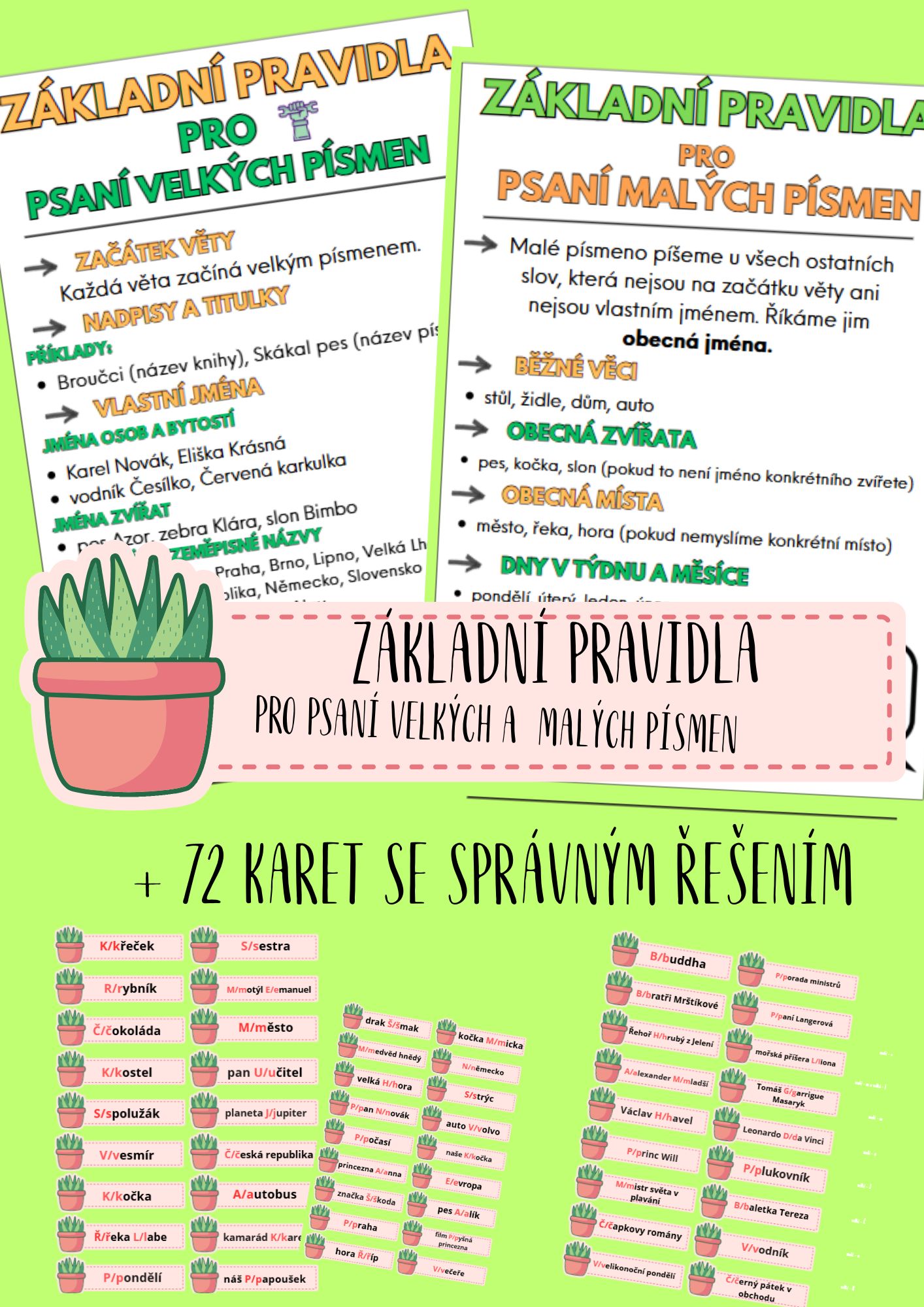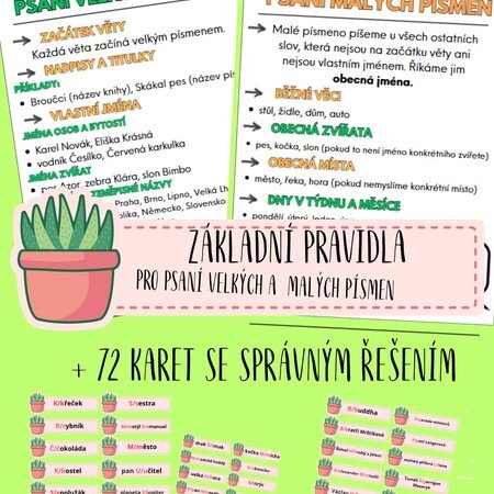 - 2 přehledné listy se základními pravidly psaní velkých a malých písmen