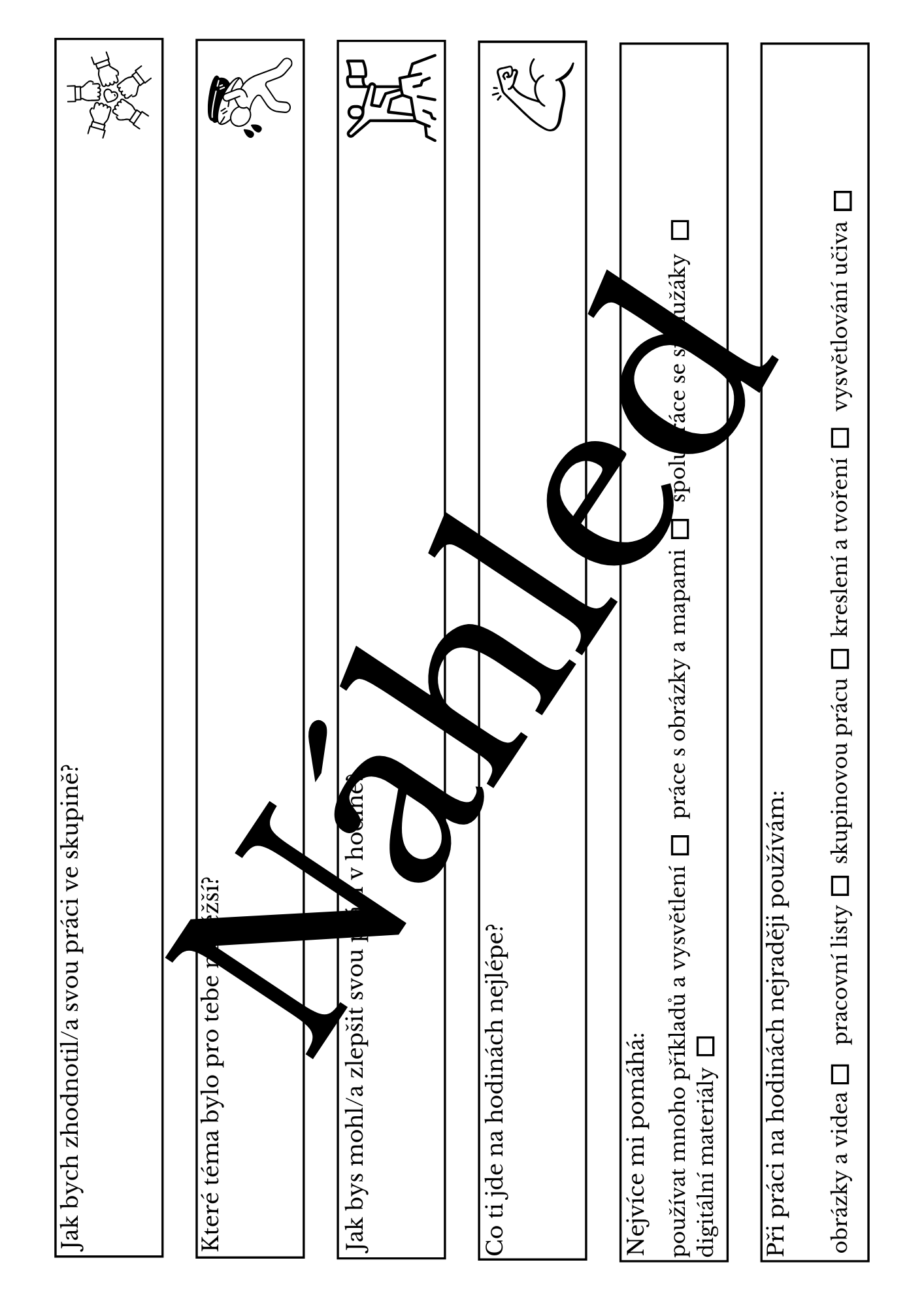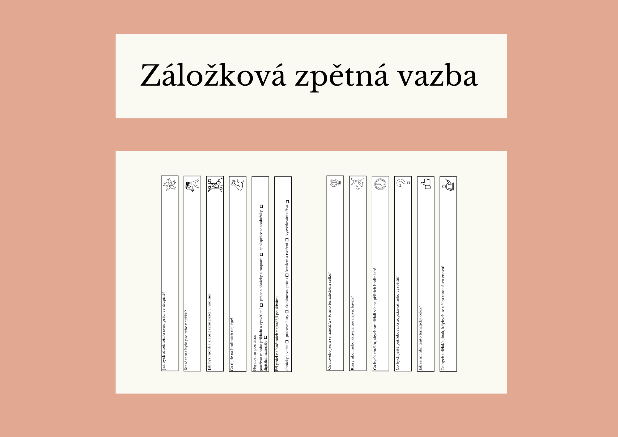 - Vystřižené záložky se zpětnou vazbou nalepte žákům do sešitu.
