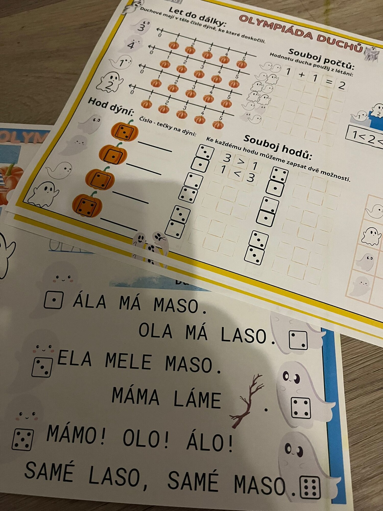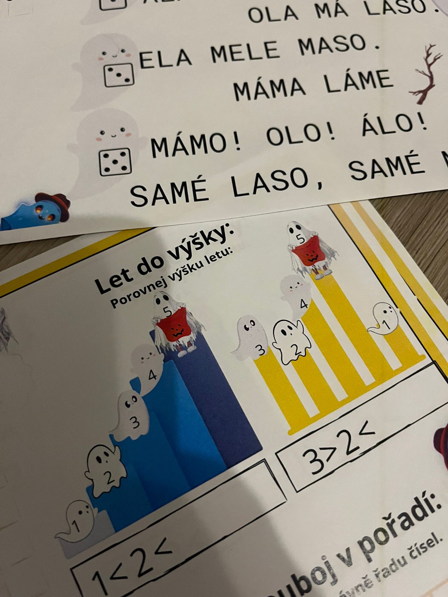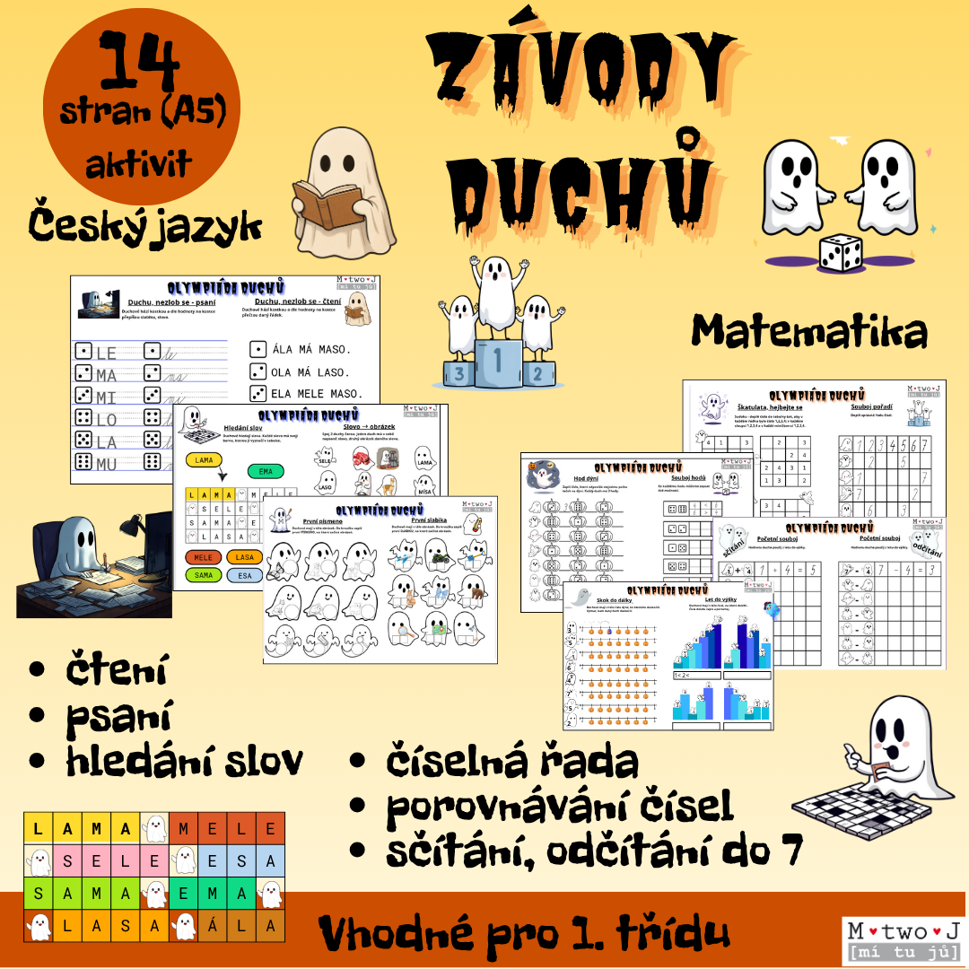 - Rozvoj matematických a jazykových dovedností formou hravých a tematických úkolů s motivem duchů. Vhodné pro období Halloweenu nebo jako zábavná tematická výuka.
