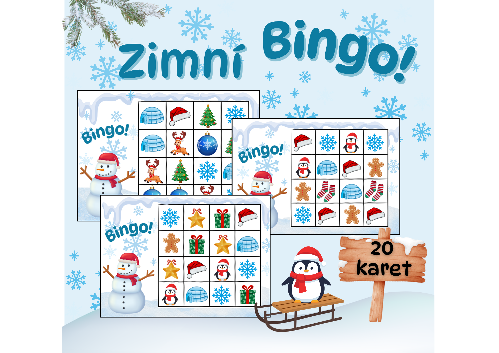 ❄️ Zimní Bingo – 20 karet plných zimní zábavy! ❄️