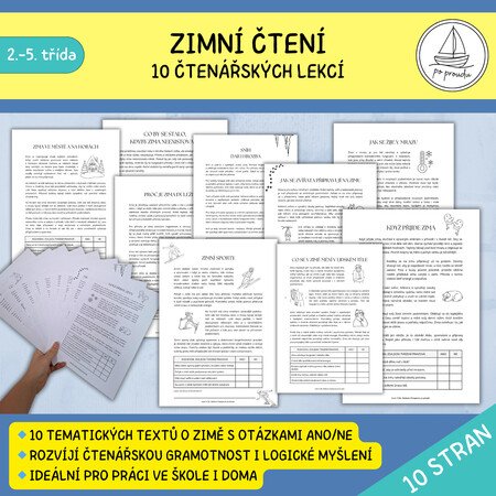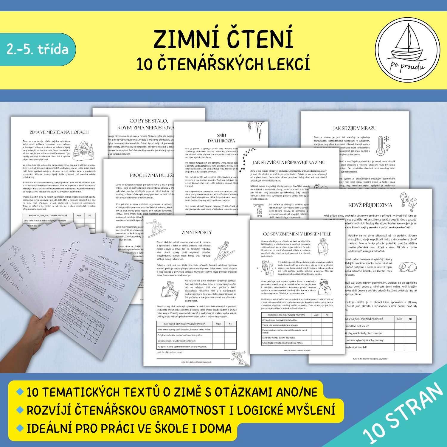 Soubor přináší 10 různorodých textů se zimní tematikou, které rozvíjejí čtenářskou gramotnost dětí zábavnou a přístupnou formou. Texty jsou doplněné o otázky na ANO/NE. ❄️