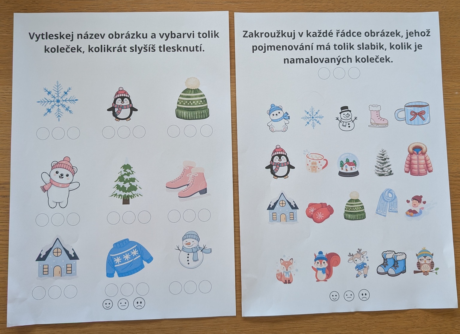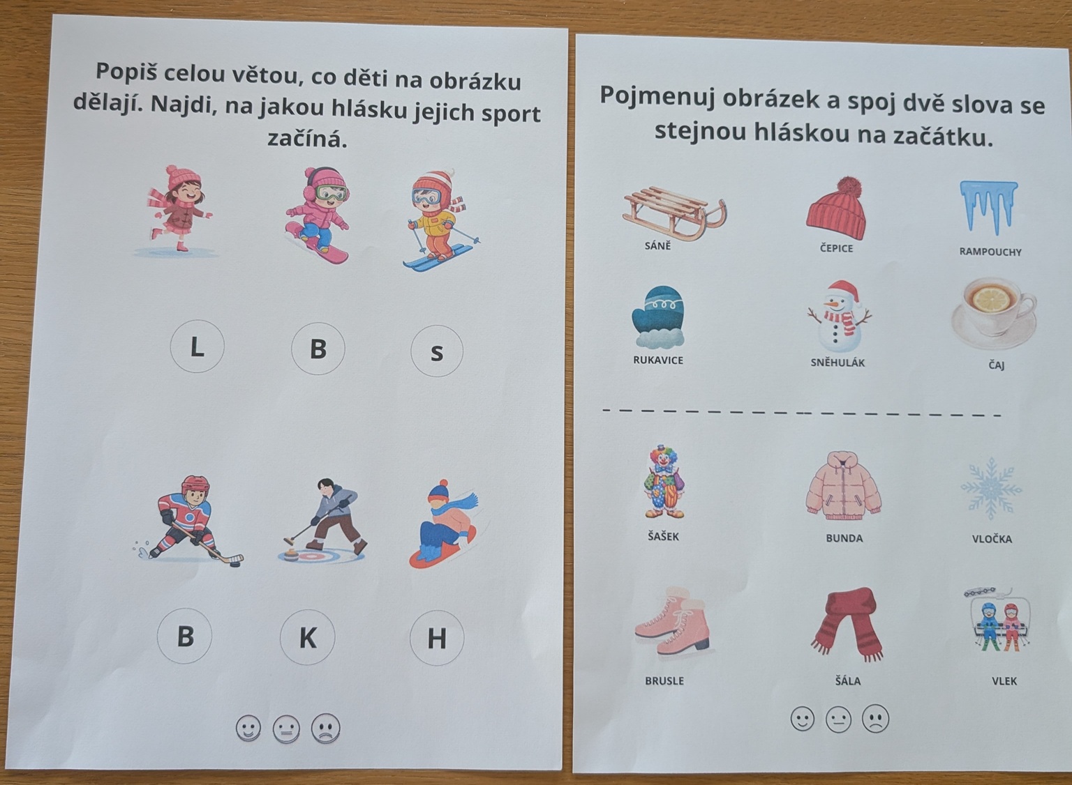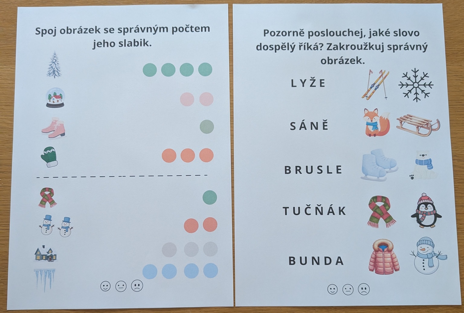 Jedná se o soubor 10 pracovních listů na hraní s písmeny a slovy se zimní tematikou. Najdete tu pracovní listy na slabiky, určování první hlásky ve slově, hláskování, rýmy a hledání stejných písmen.