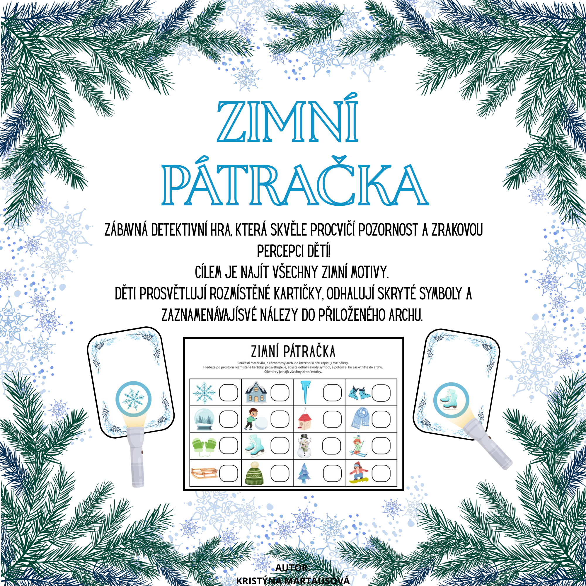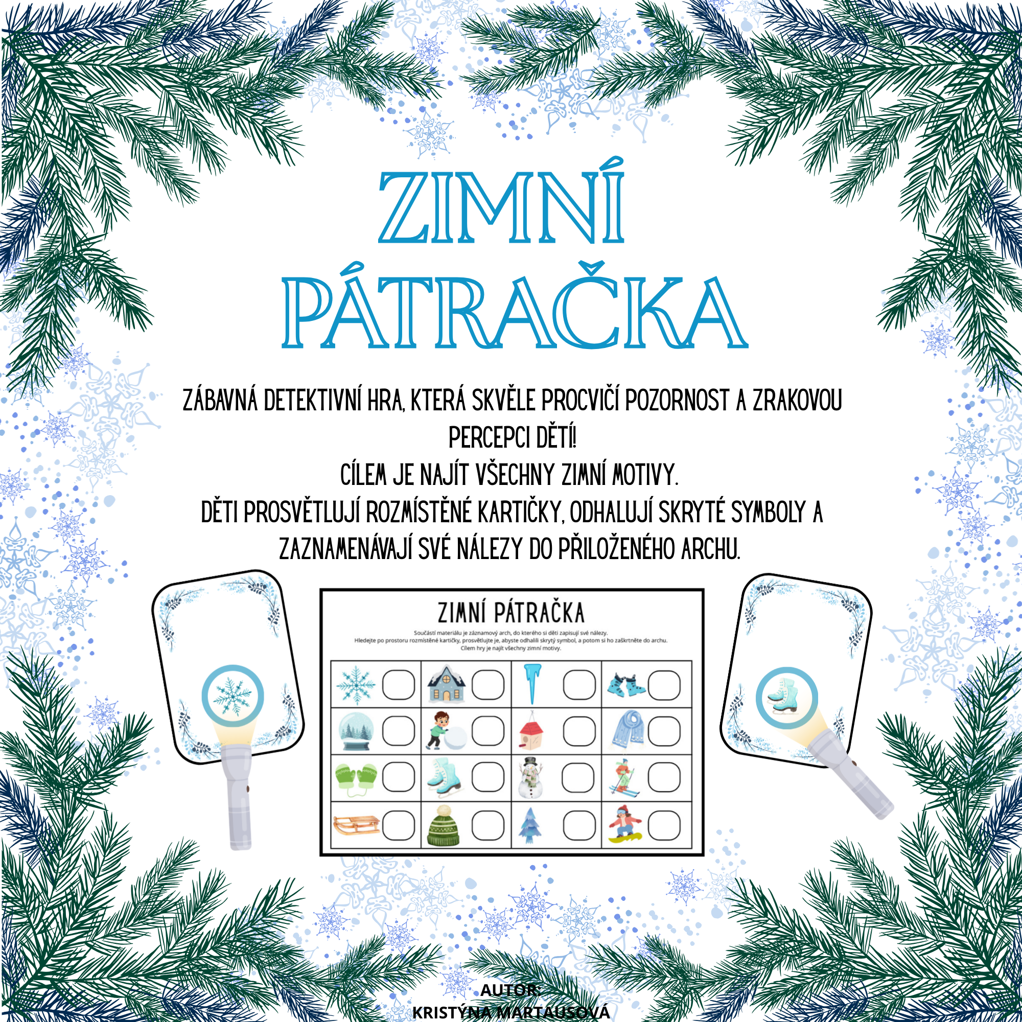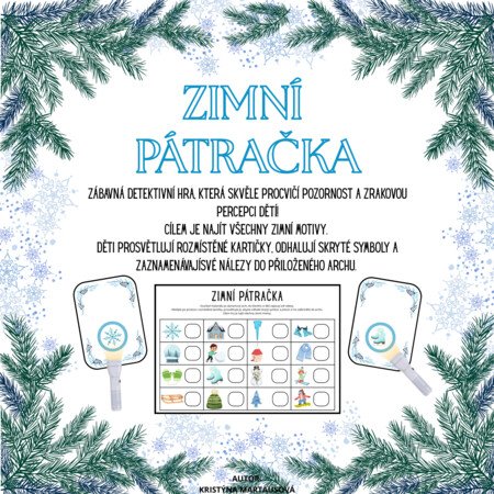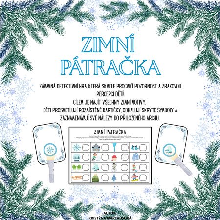 Tato zimní pátračka je poutavá a interaktivní hra navržená tak, aby rozvíjela klíčové kognitivní dovednosti dětí. Děti se stanou malými detektivy a budou pátrat po skrytých zimních motivech!