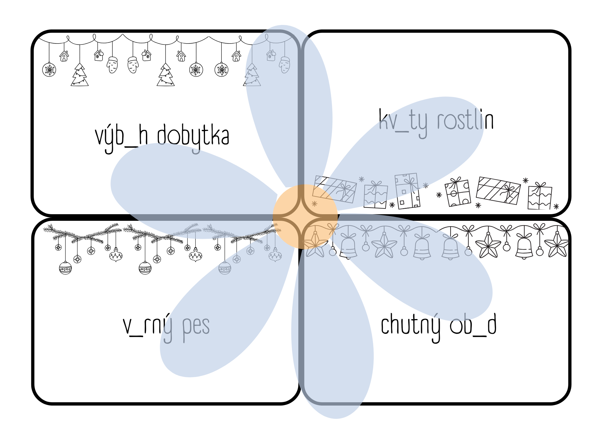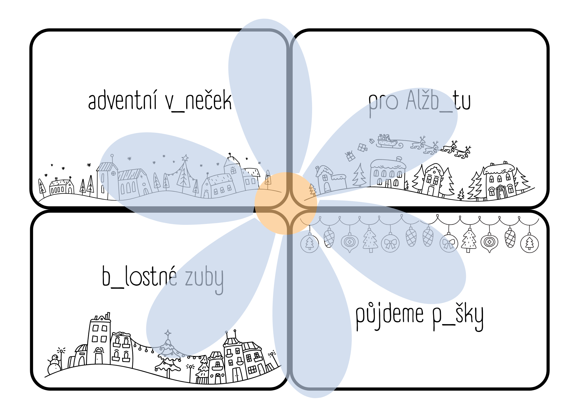 Materiál se hodí pro samostatnou práci, práci ve dvojicích, skupinové aktivity i stanoviště. Díky jednoduchému černobílému vánočnímu designu lze kartičky snadno tisknout a využít během adventních hodin českého jazyka.