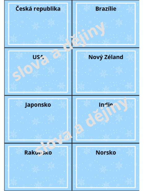 - Obsahuje: Kartičky zemí a sportů.
