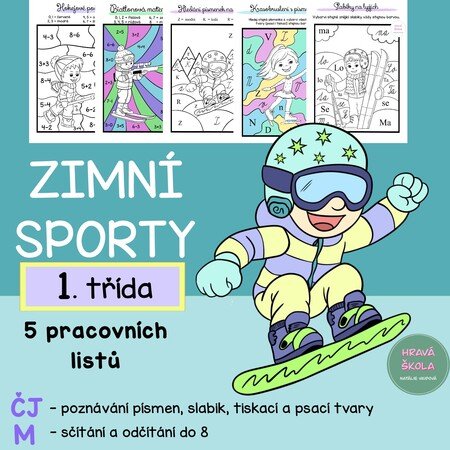 MATERIÁL obsahuje 5 PL s TEMATIKOU ZIMNÍCH SPORTŮ do ČJ a M pro 1. TŘÍDU ❄️