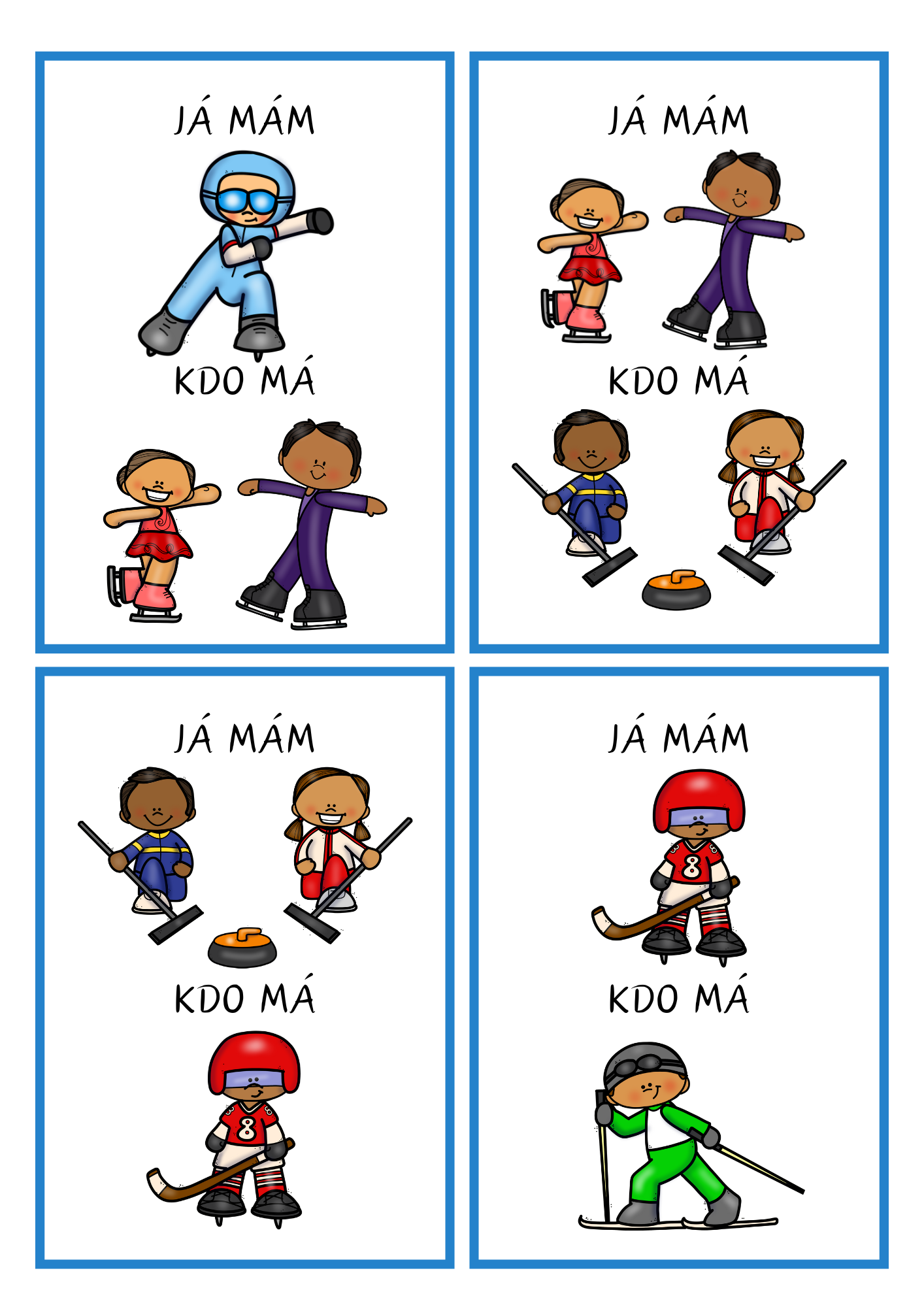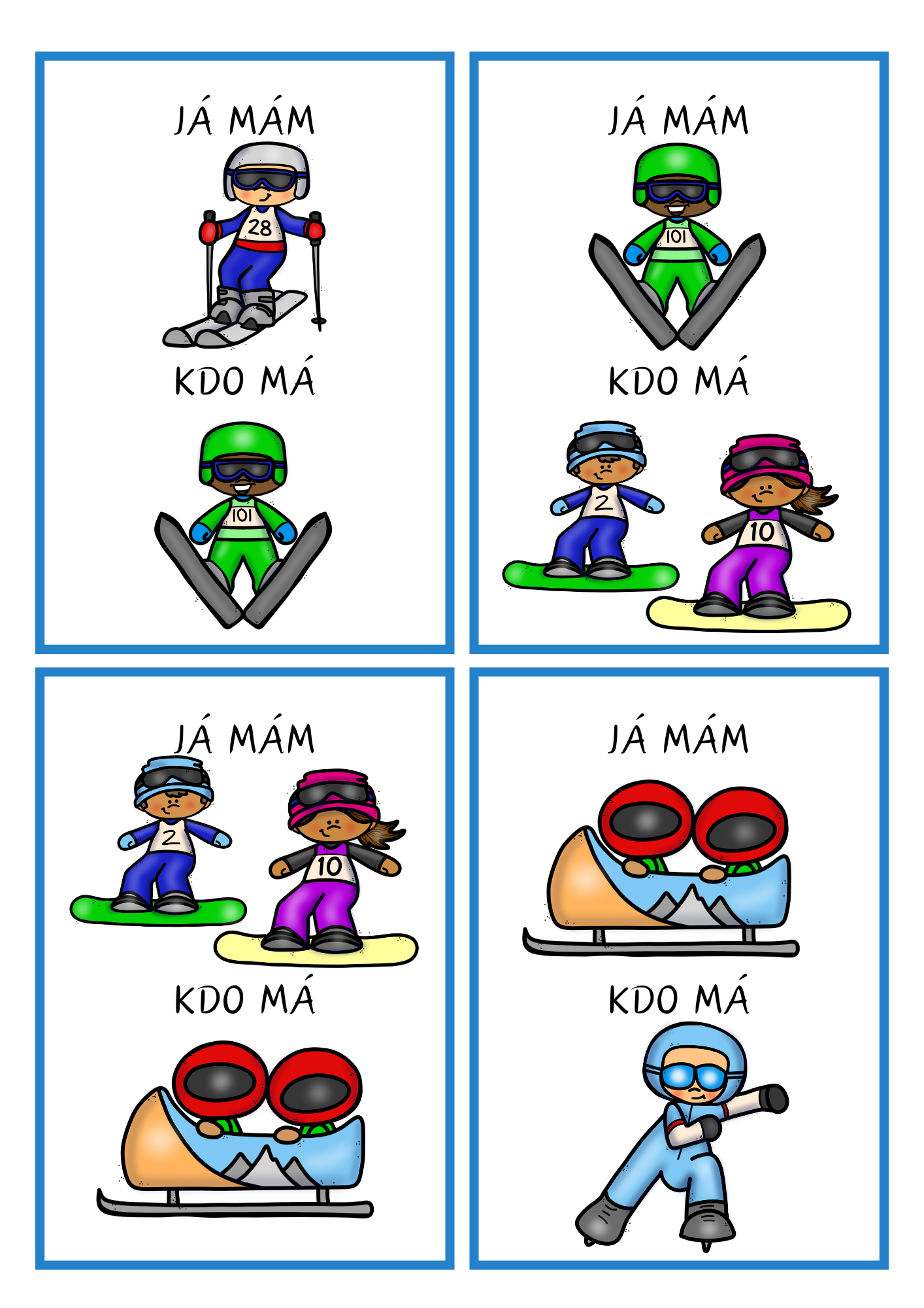 - herní karty s pojmy a obrázky spojené se zimními sporty