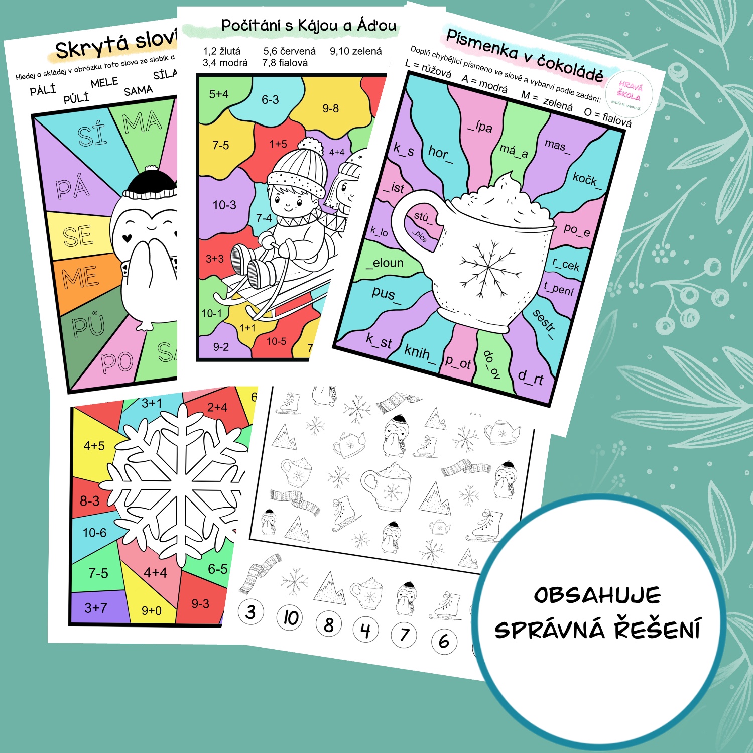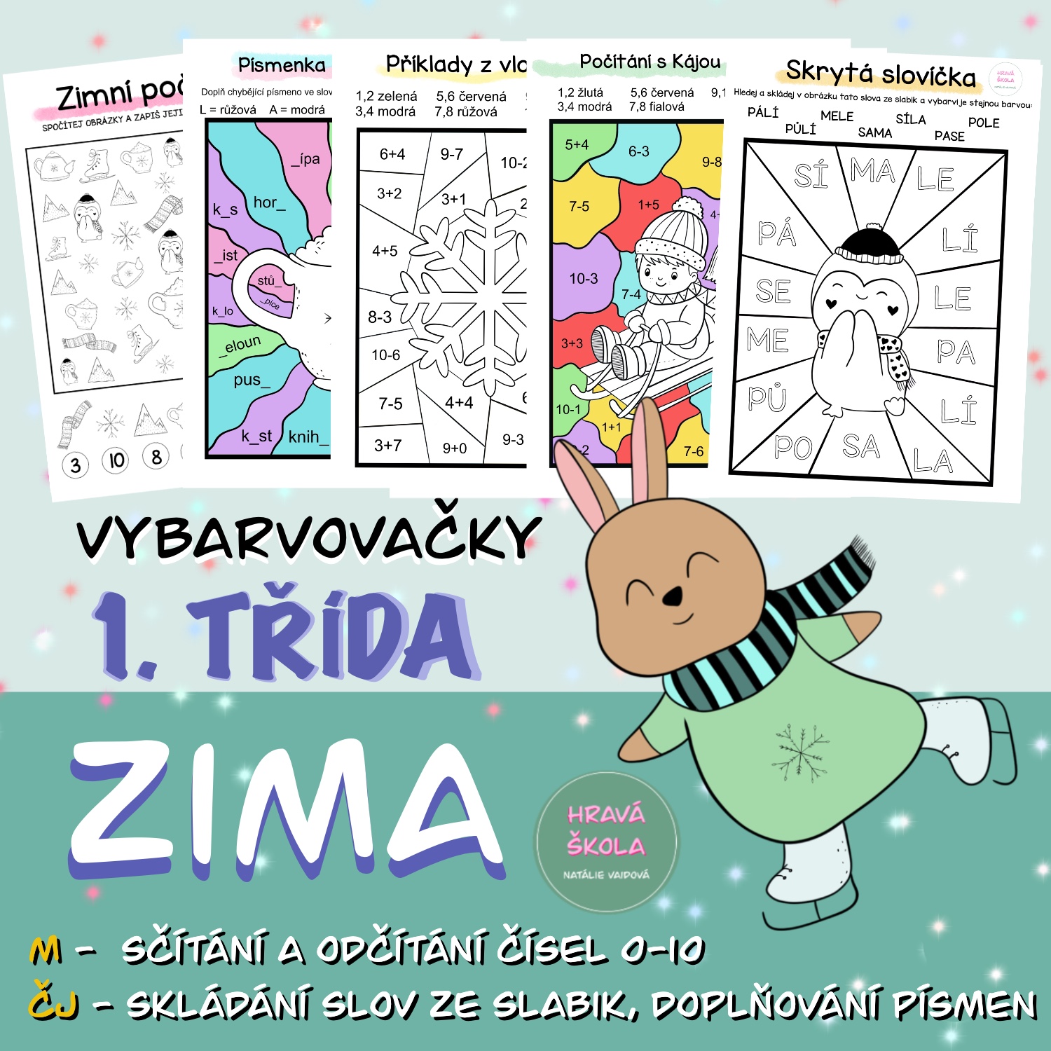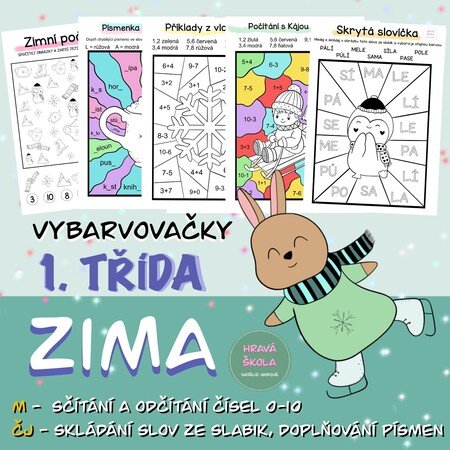 MATERIÁL obsahuje 5 PL se ZIMNÍ TEMATIKOU do ČJ a M pro 1. TŘÍDU