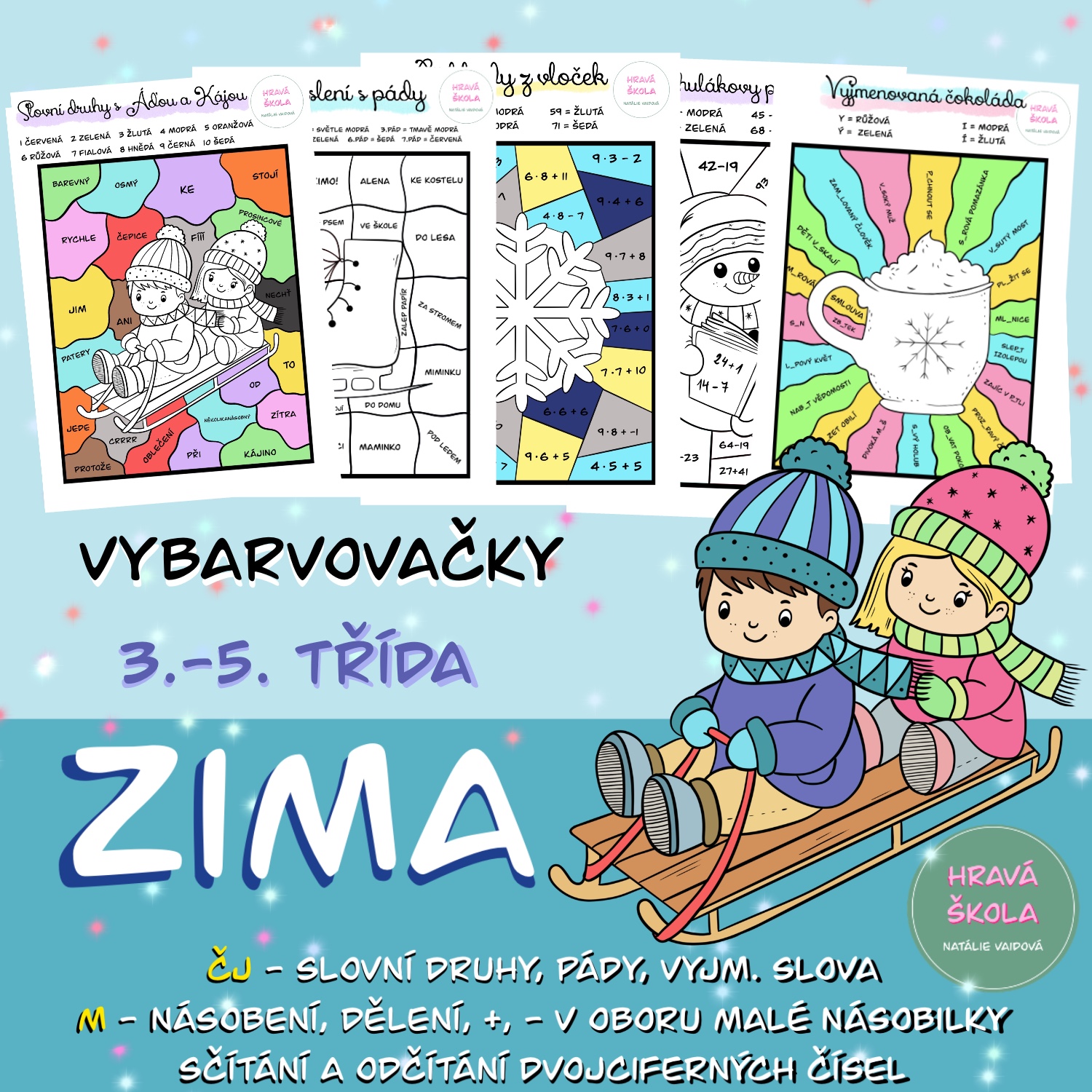 MATERIÁL obsahuje 5 PL se ZIMNÍ TÉMATIKOU do ČJ a M pro 3.-5. TŘÍDU