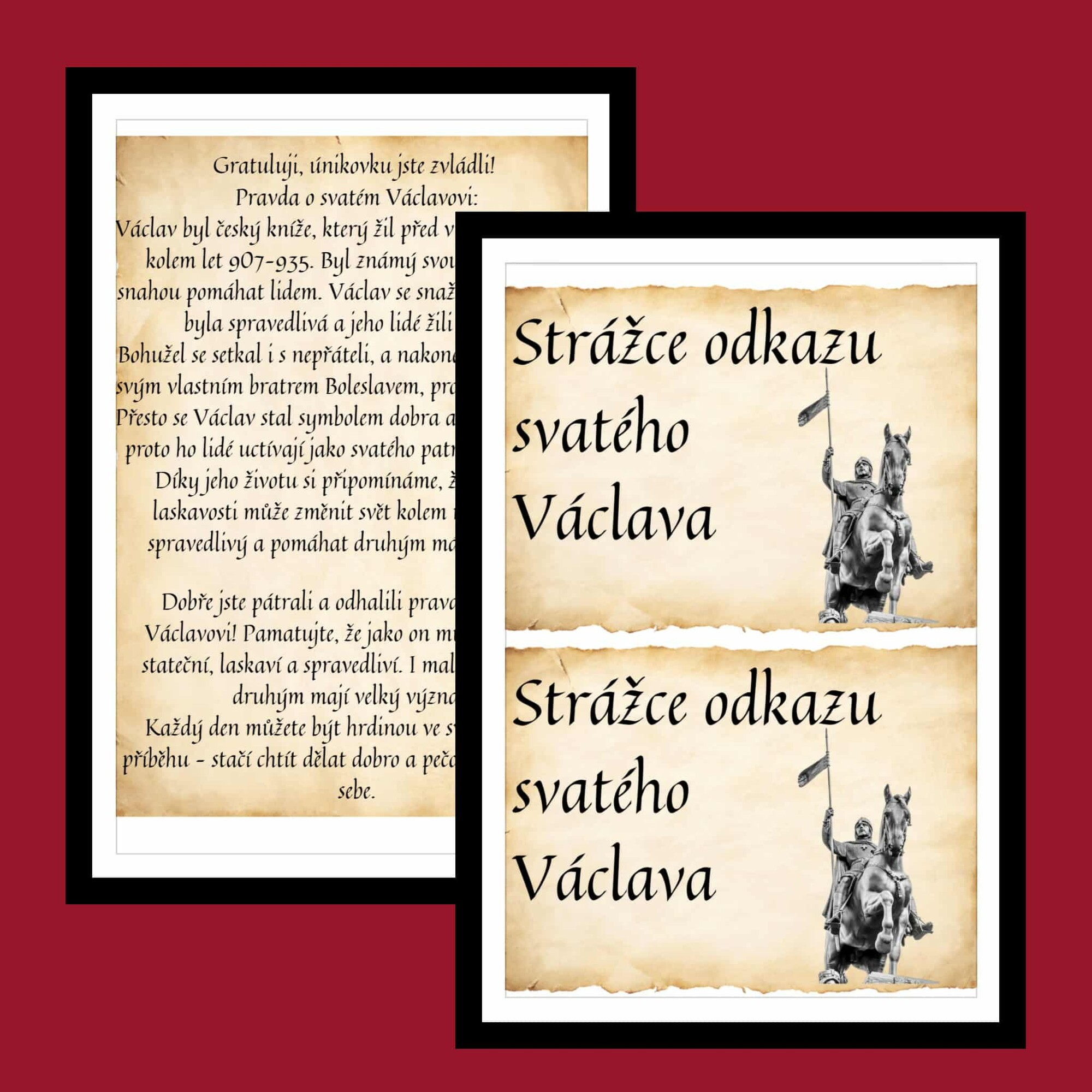 Po získání všech částí kódu (K – 935 – BOLESLAV – VÍRA – 907 – SVATÝ) žáci otevřou truhlu pravdy, kde na ně čekají diplomy „Strážci odkazu sv. Václava“.