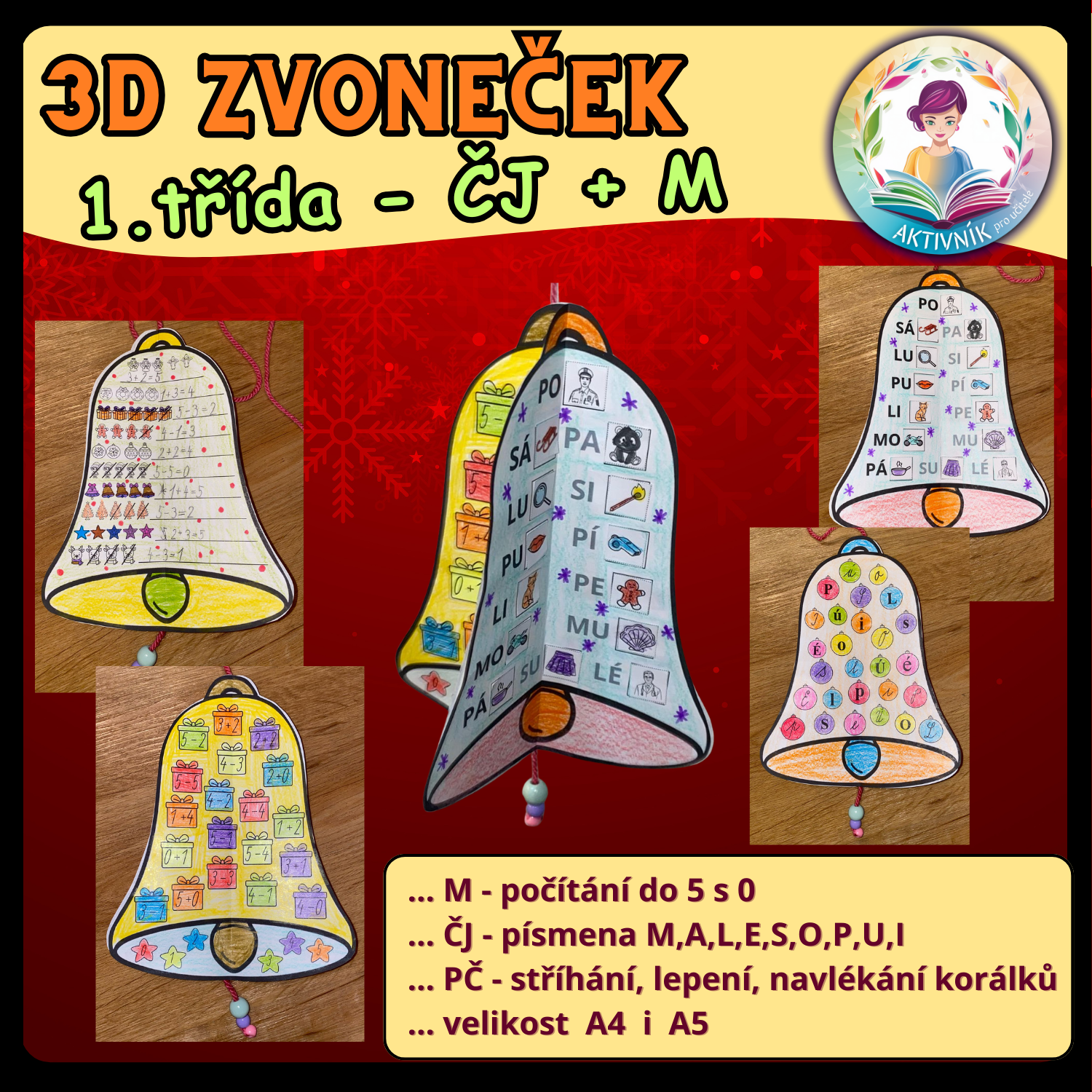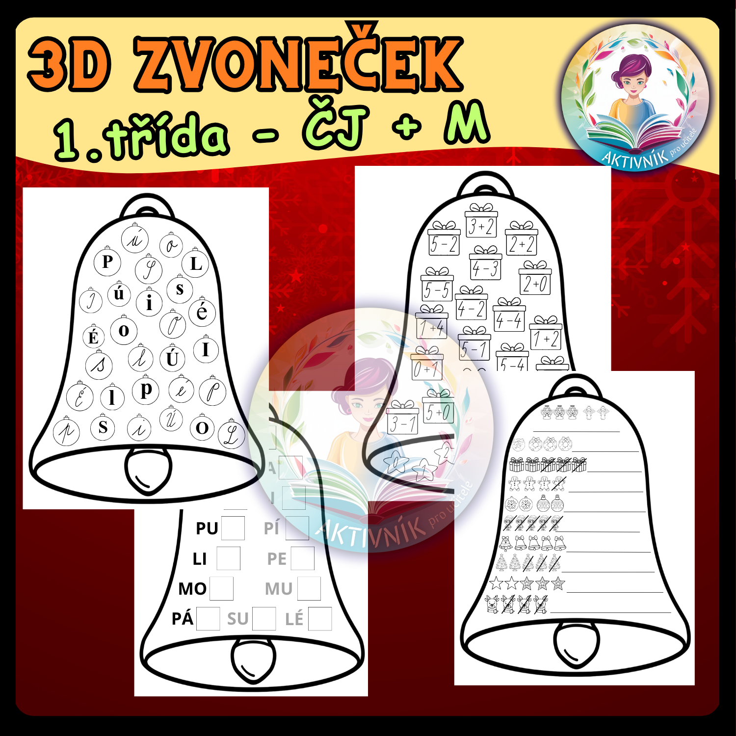 Zvoneček 3D je tvořivý vzdělávací materiál pro žáky 1. třídy, který propojuje čtení, počítání a výtvarnou činnost v adventním duchu. Pracovní listy se zvonečky nabízejí několik typů úkolů – práci s písmeny, slabikami, obrázkovými i početními příklady a také prostor pro vlastní tvoření.