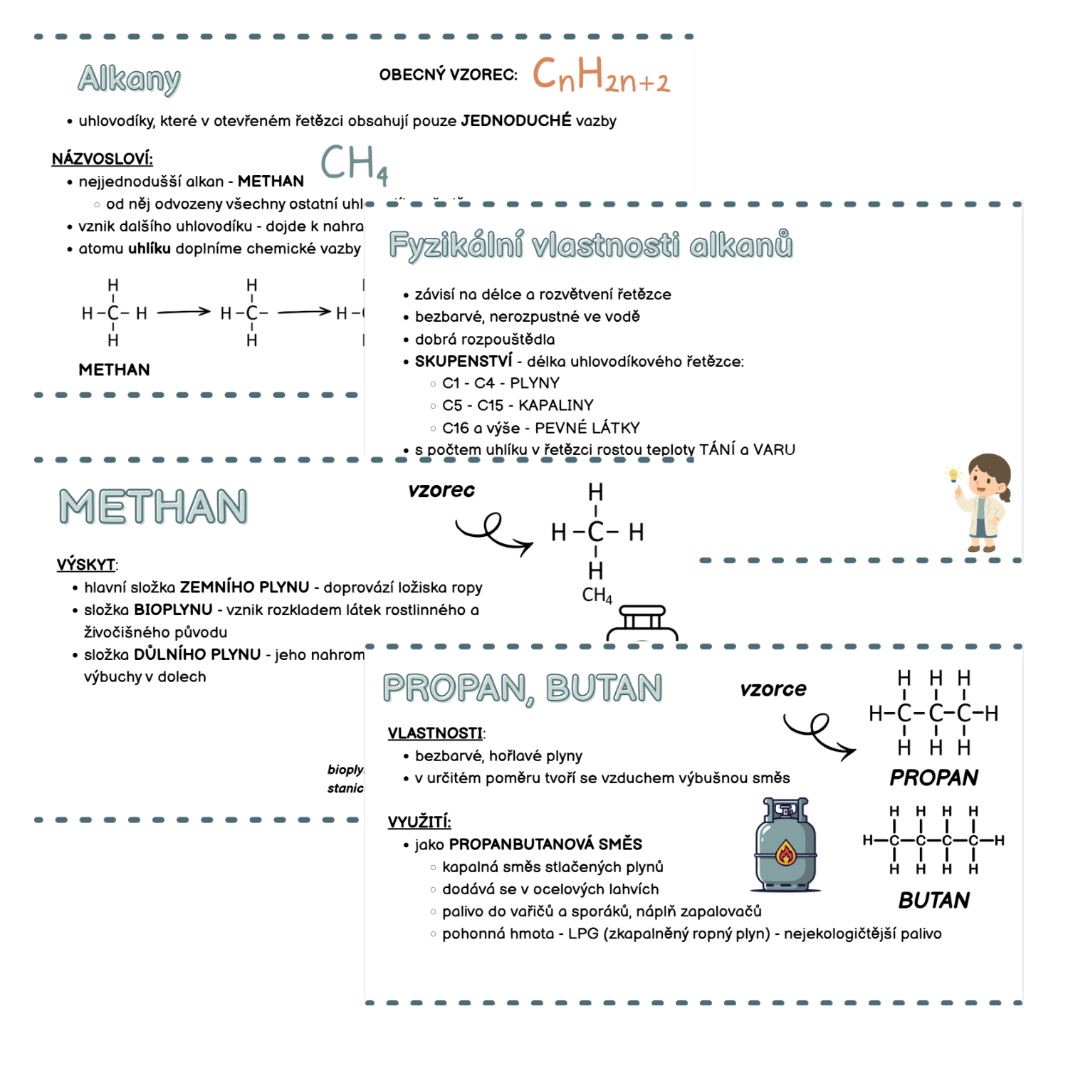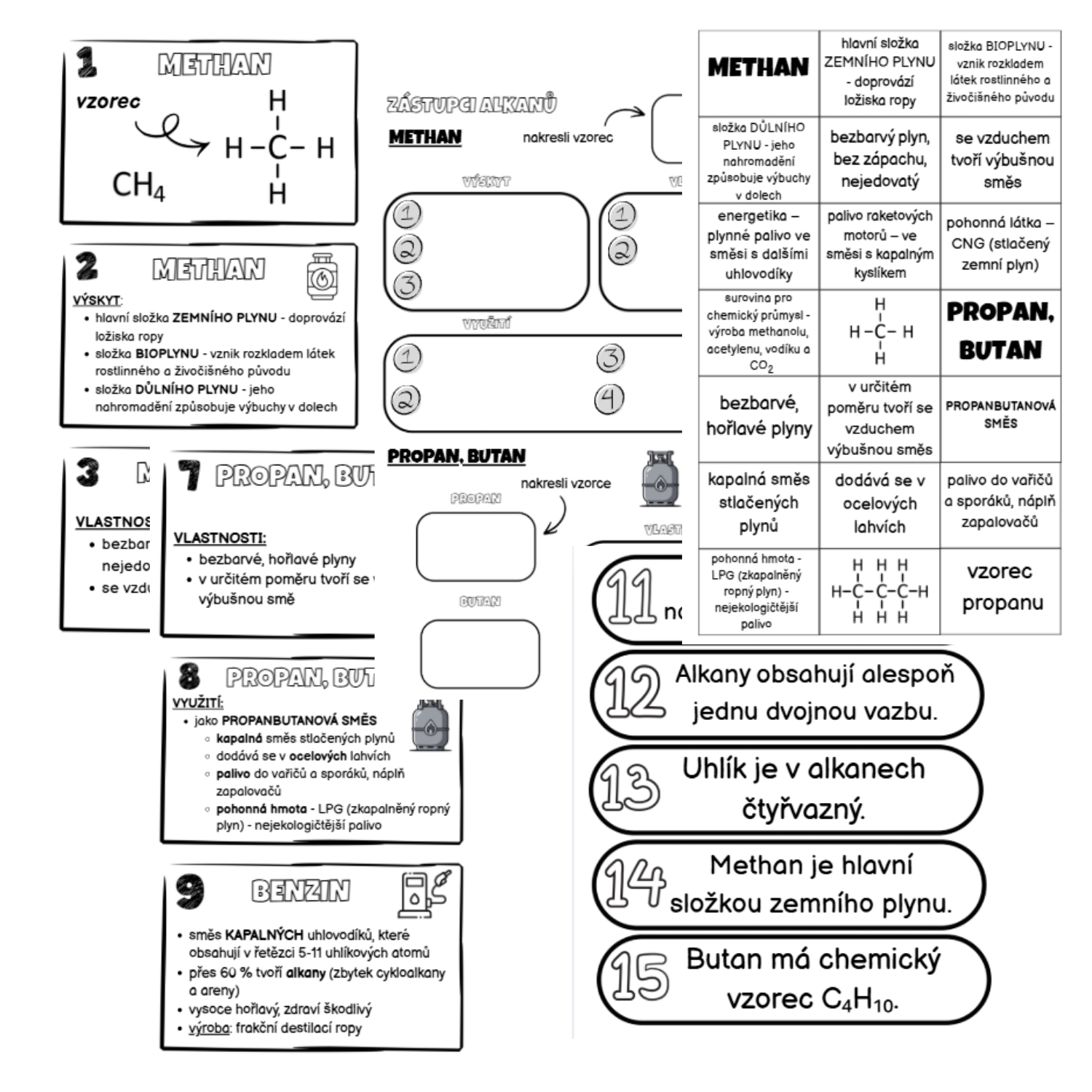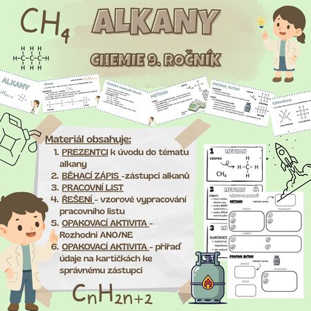 - pracovní list ZÁSTUPCI ALKANŮ - žáci si do něj dopíší poznámky z běhacího zápisu (str. 6-7)
