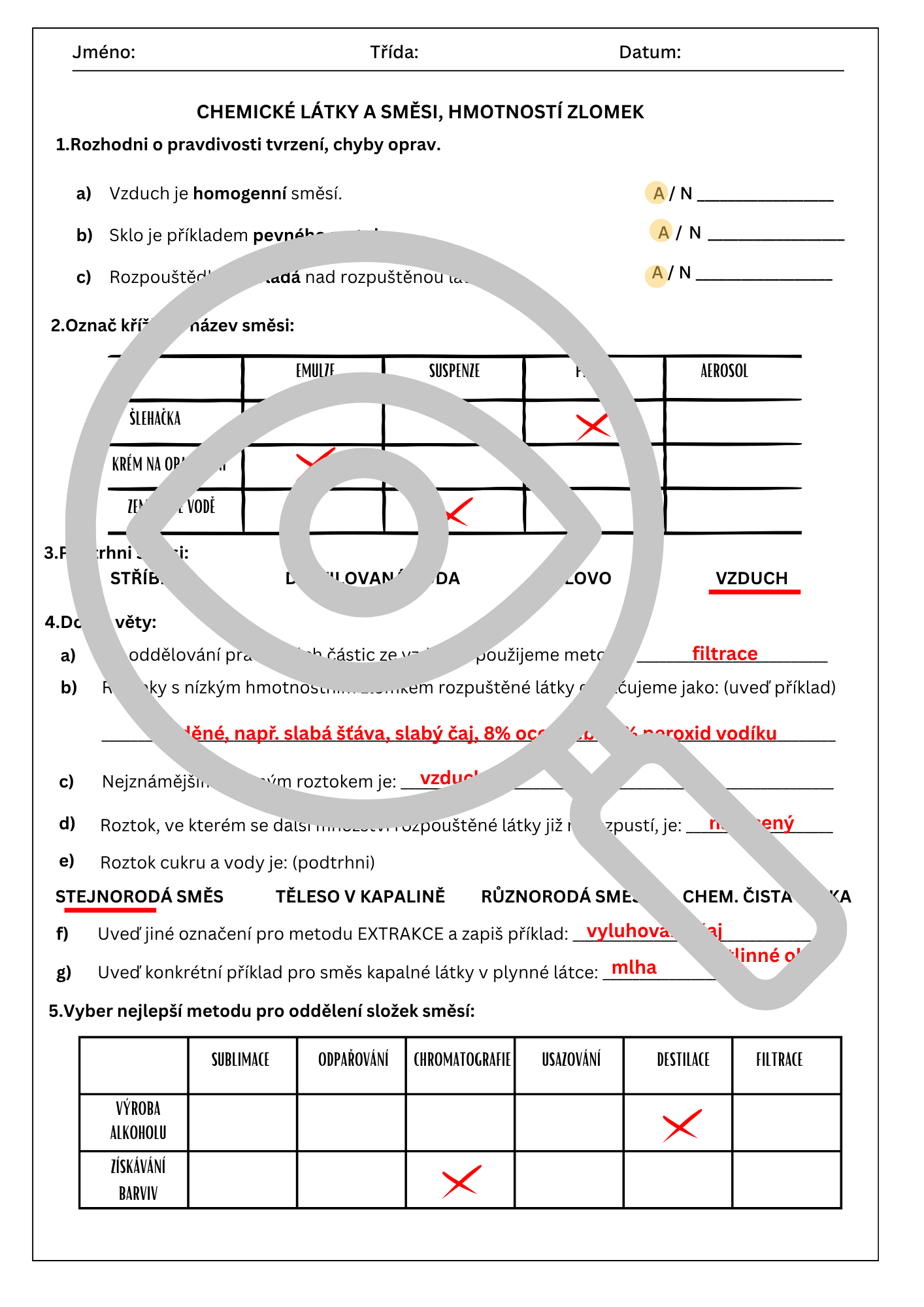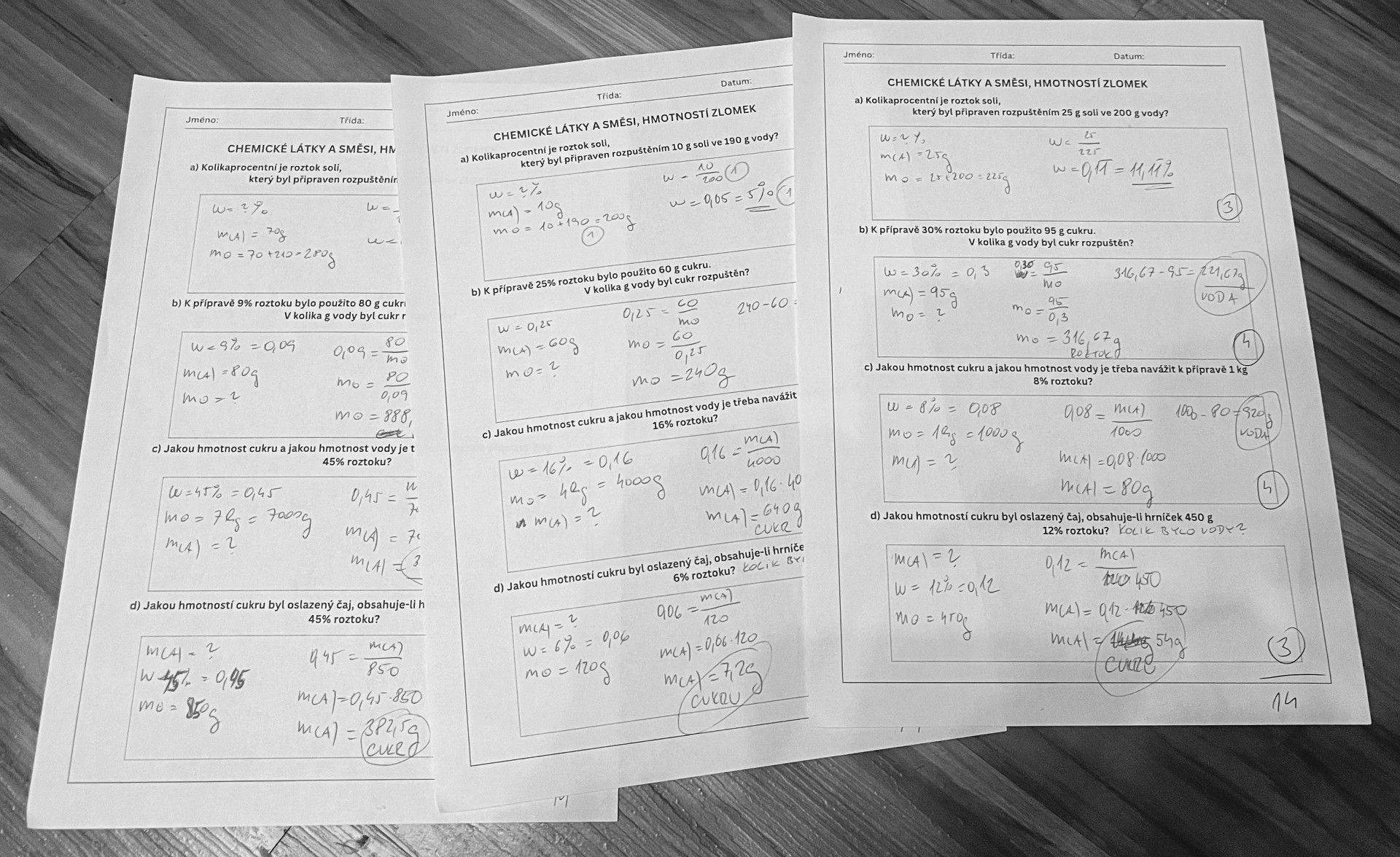 - jako přípravu k testům či vstupní opakování při opakování směsí a roztoků.