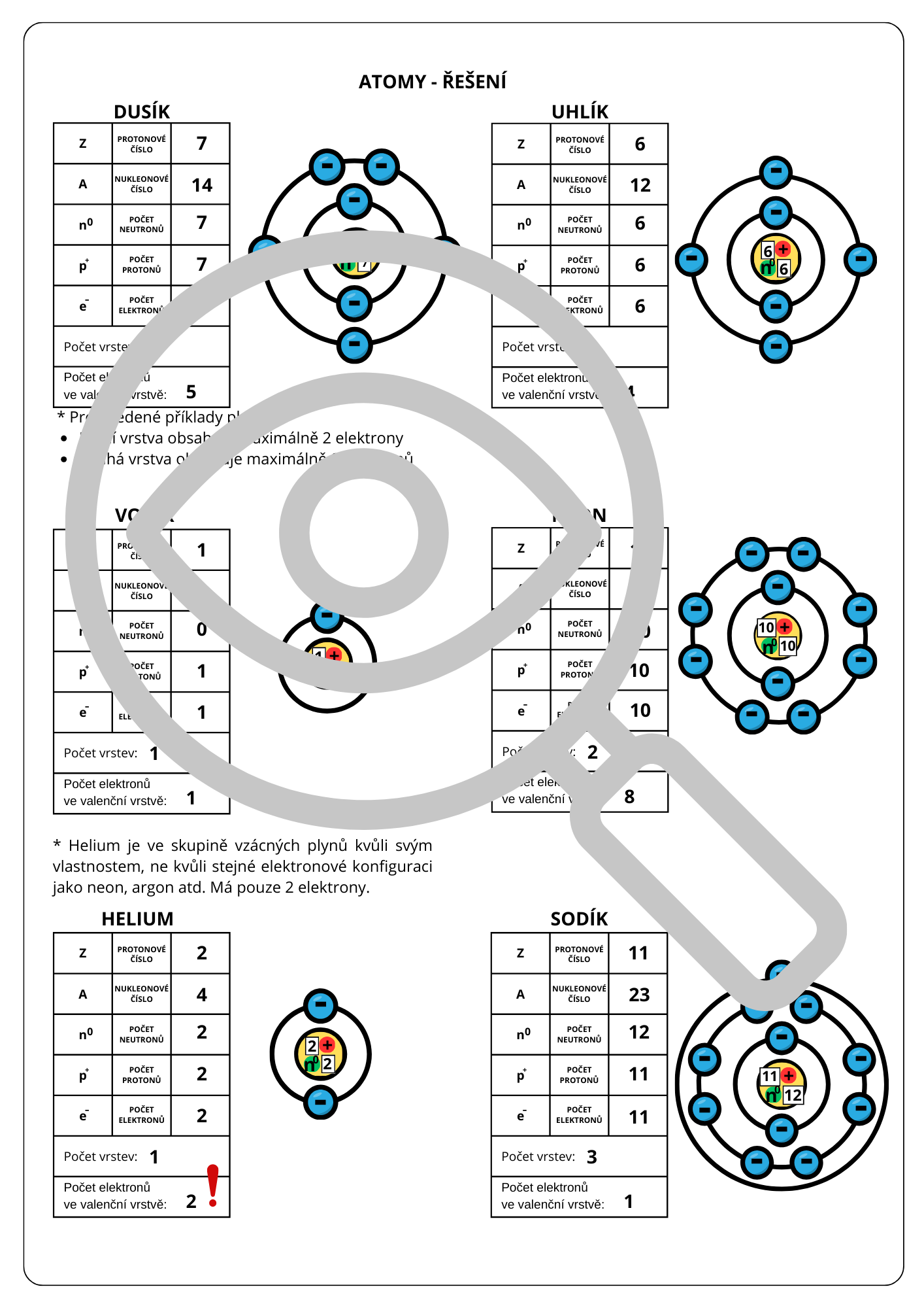 - rozvíjet schopnost zakreslit atom či iont včetně vrstev a valenčních elektronů.