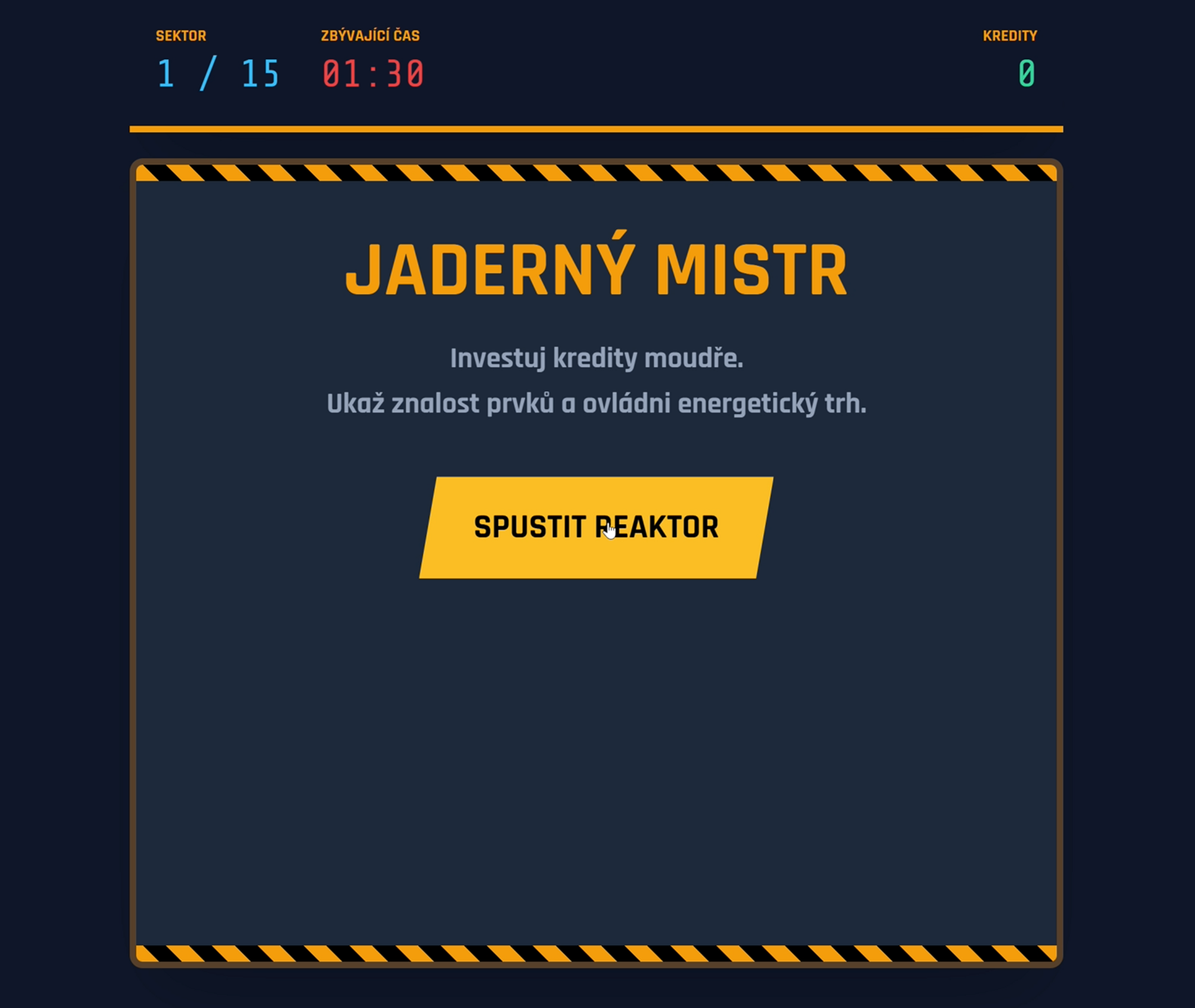 - Cíl: Dosáhnout 15. sektoru s nejvyšší možnou hodností a plnou pokladnou, aniž by došlo k explozi reaktoru.