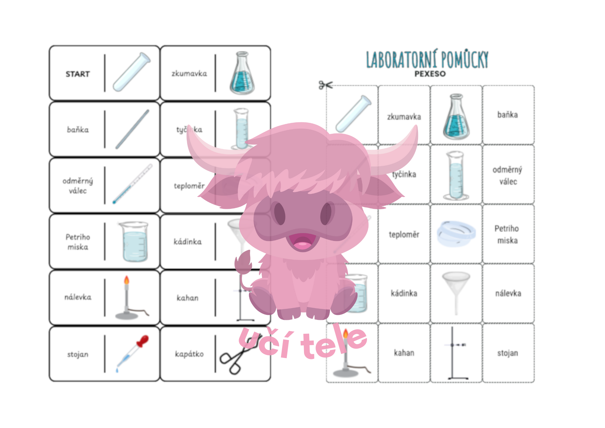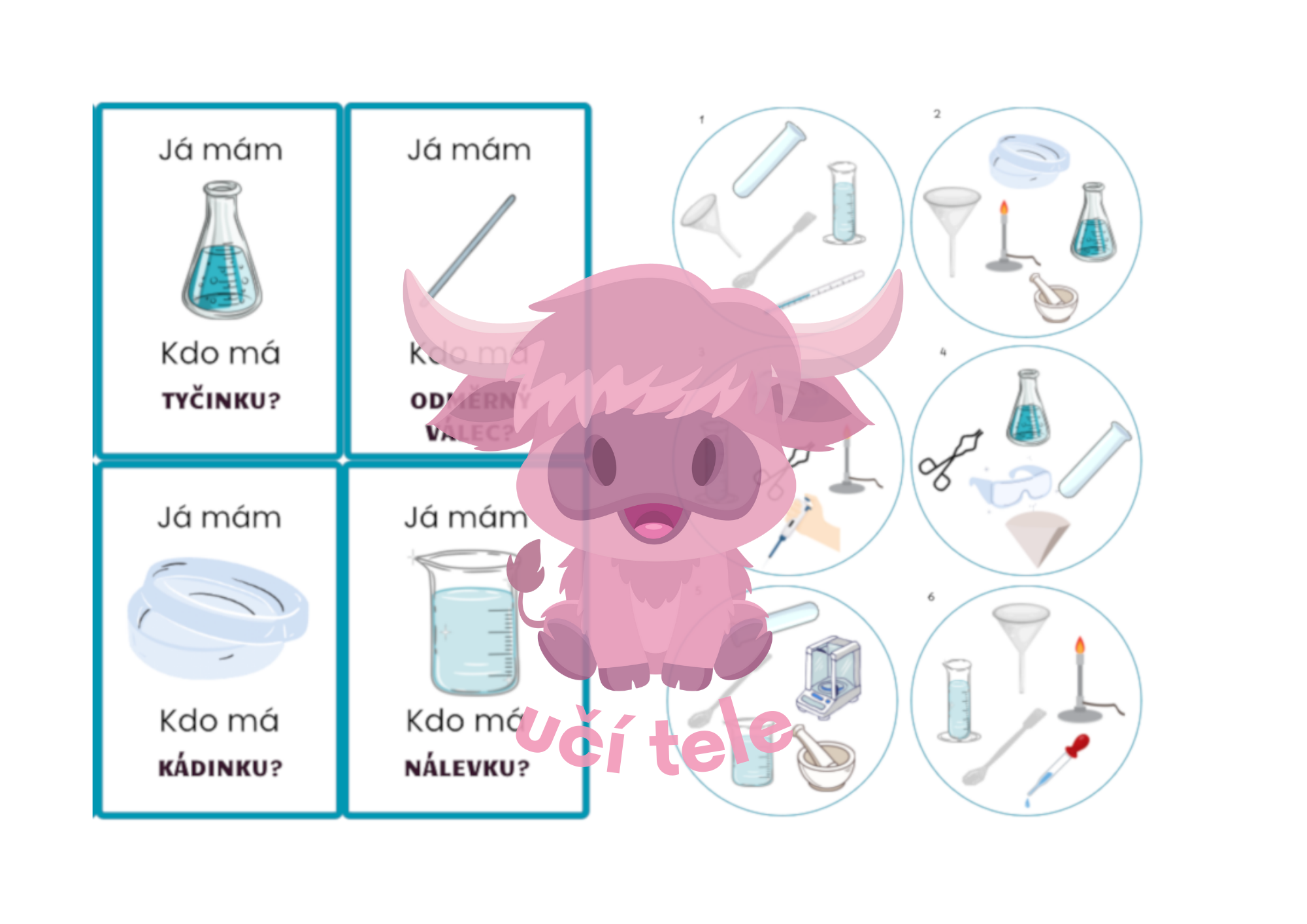 Komplexní sada herních materiálů k procvičení chemického nádobí a laboratorních pomůcek. Soubor obsahuje čtyři klasické didaktické hry – pexeso, domino, „Já mám – kdo má?“ a postřehovku – doplněné o tipy na další aktivity (speed sort, třídění do kategorií, příběhová laboratoř, Kimova hra). Materiál je vhodný pro skupinovou práci, stanoviště i rychlé opakování.