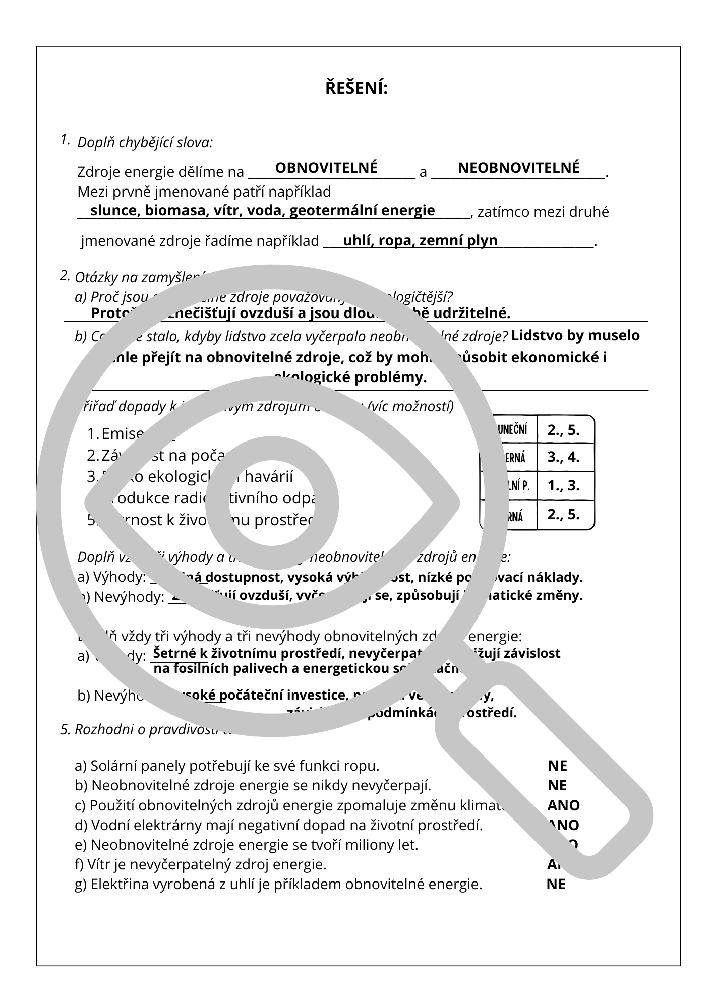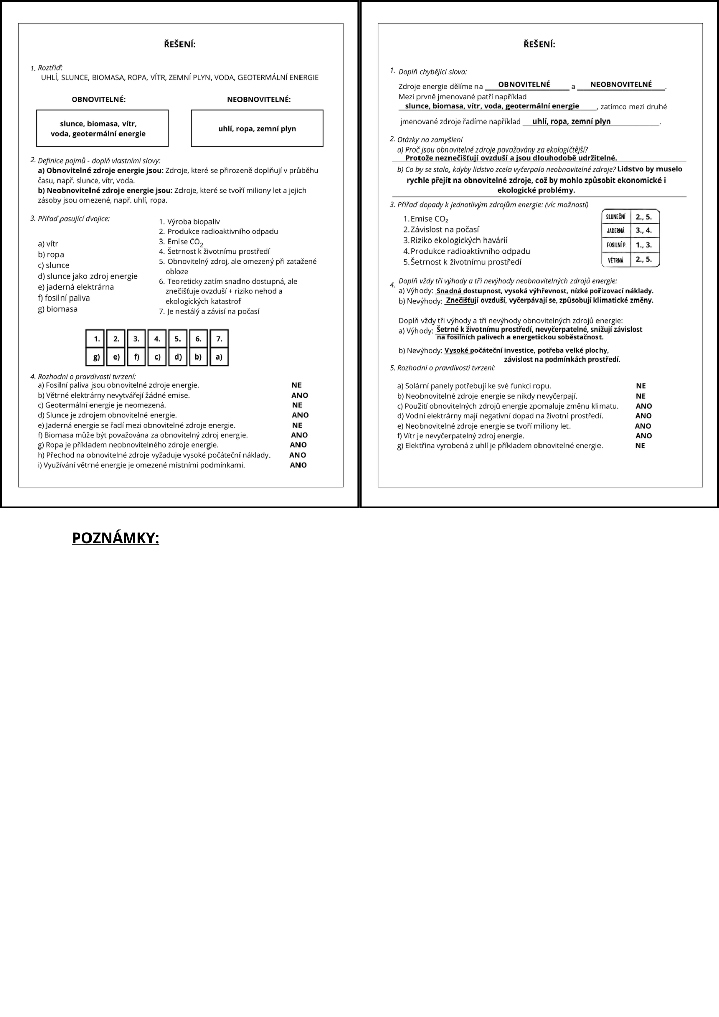 2 pracovní listy k obnovitelným a neobnovitelným zdrojů energie