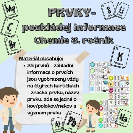 Materiál je primárně určen pro žáky 8. ročníku ZŠ do hodin chemie v rámci tematického celku PRVKY.