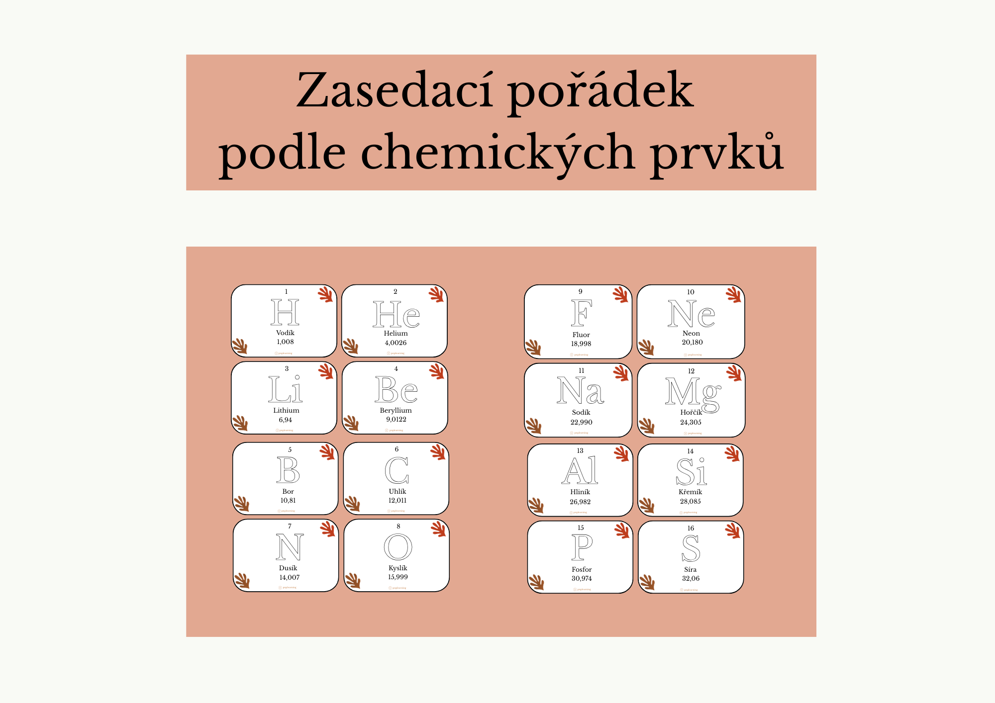 - Úkolem žáka je najít si své místo podle toho, jaký prvek dostal.