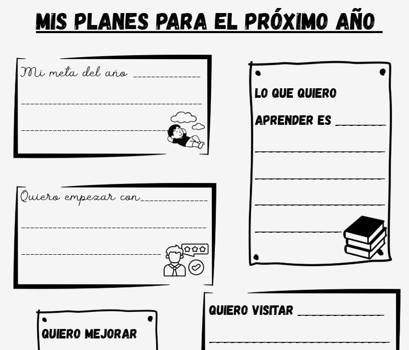 Soubor pracovních listů pro bližší seznámení v kolektivu. Je možné využít na začátku nového školního roku či na začátku nového kalendářního roku pro zmapování toho, co se povedlo ve starém roce a pro stanovení cílů do nového roku. Vhodný je pro procvičení frází, minulých časů, slovesa "querer".