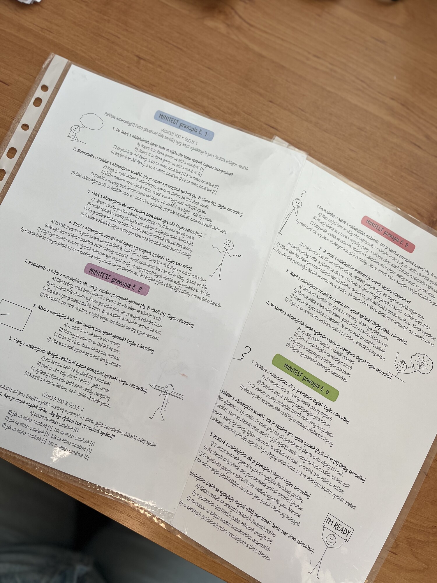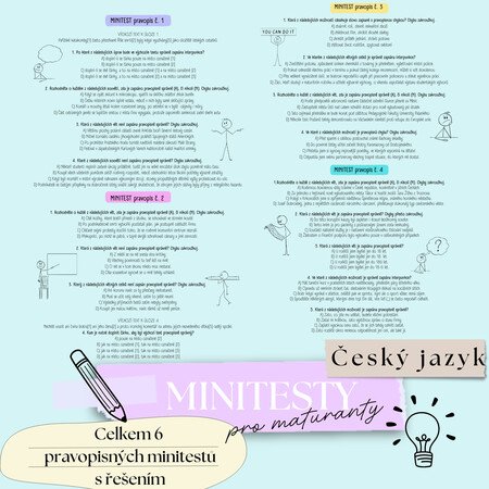 Pravopisné MINITESTY, těžší verze sloužící pro maturitní obory, podobné didaktickému testu. Mohou sloužit jako procvičování, opakování či testy do hodin.