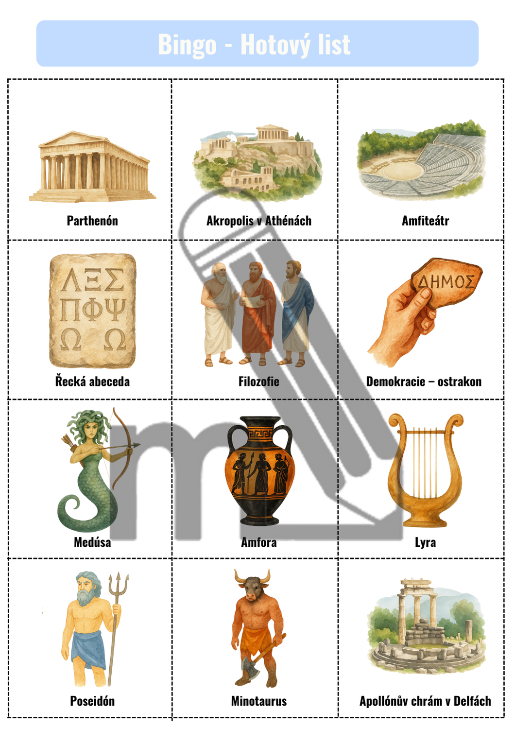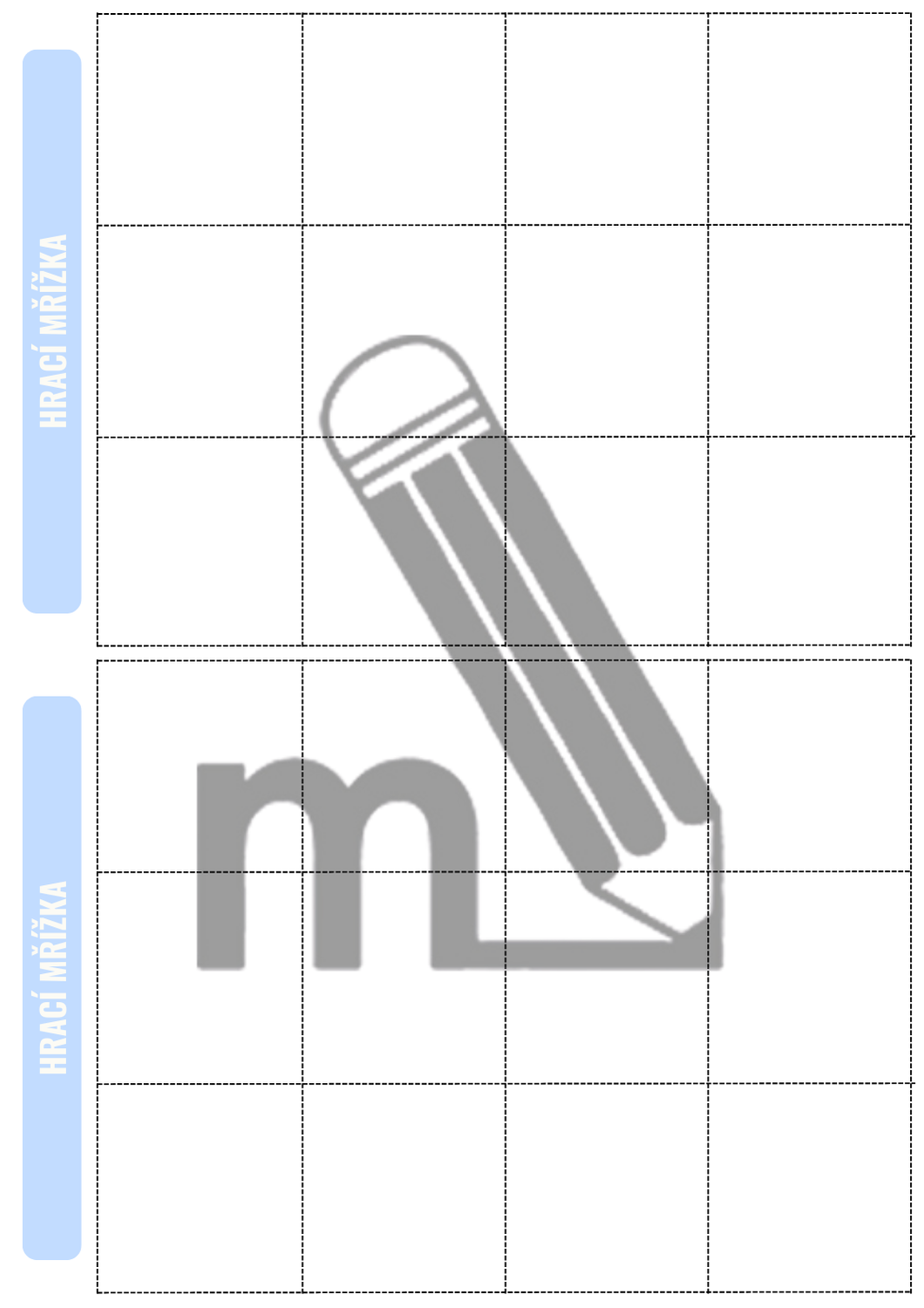 20 hracích karet s připravenými obrázky (3 × 4 políček)