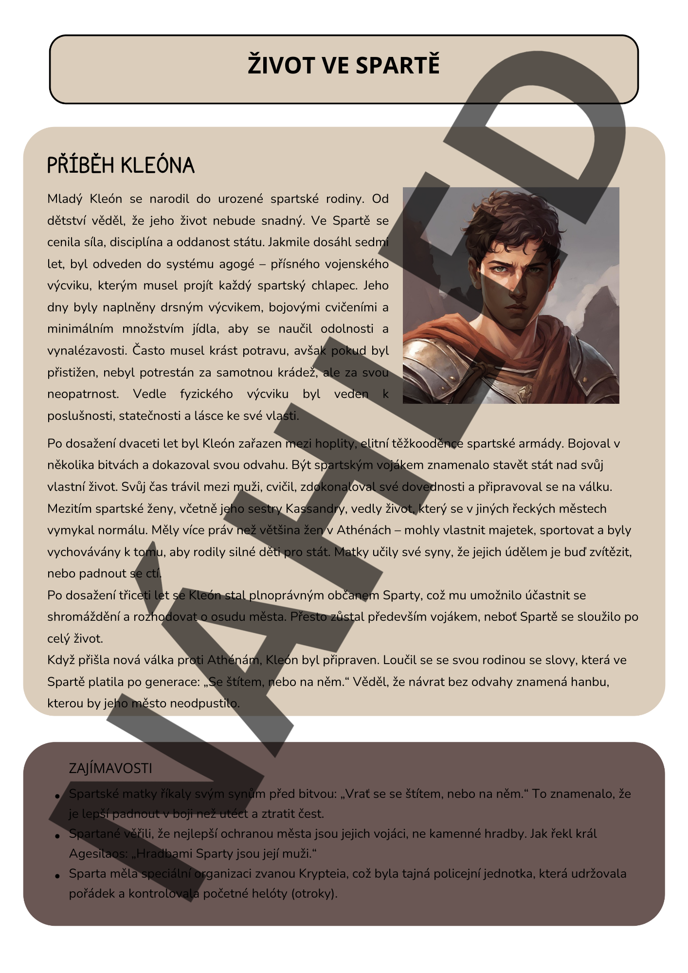 • Text o Spartě: Příběh o chlapci Kleónovi vyrůstající ve Spartě
