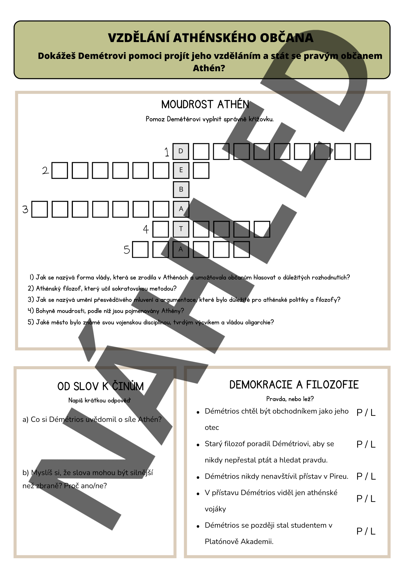 • Text o Athénách: Příběh o chlapci Démétriovi vyrůstajícím v Athénách