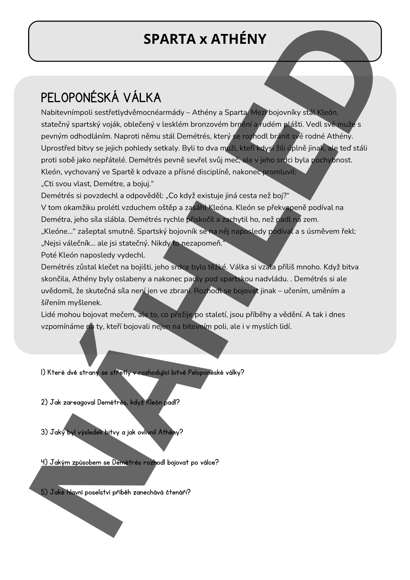 • Závěrečný text: Kleón a Démétrios se potkají v Peloponéské válce.