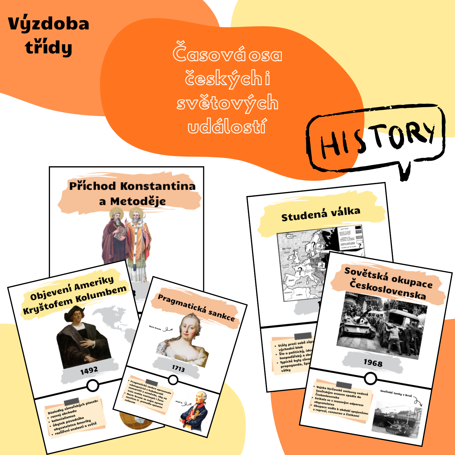 Materiál obsahuje přehled klíčových významných událostí a osobností, čímž pomáhá žákům lépe se orientovat v dějinách. Je ideální jako nástěnná výzdoba do třídy.