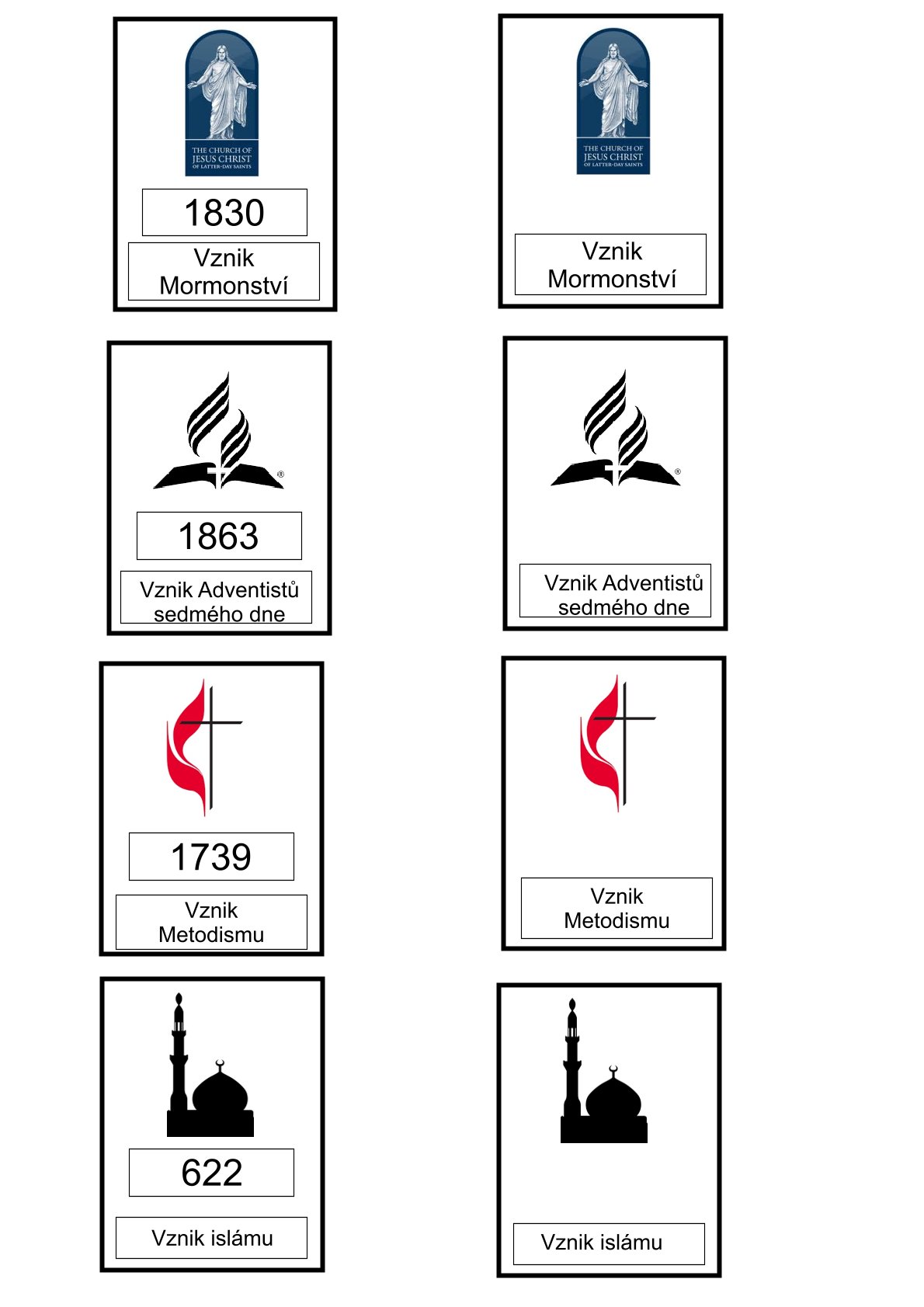 Všechny karty si můžete vytisknout, nastříhat a zalaminovat. Dostanete celkem 88 kartiček. Na jedné straně je název události bez letopočtu, na druhé straně název události s letopočtem.