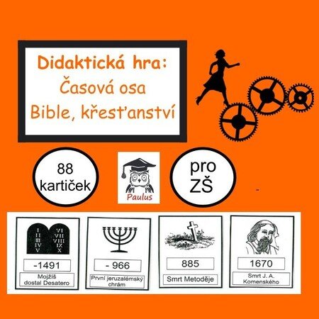 Didaktická hra: Časová osa – bible, křesťanství je pro žáky druhého stupně základních škol nebo žáky středních škol. Hra se dá uplatnit ve výuce dějepisu nebo náboženství. Hra obsahuje celkem 88 kartiček.