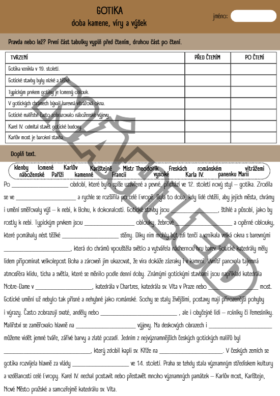 - Aktivizující čtení s předvídáním – žáci nejprve tipují odpovědi před čtením a následně ověřují po čtení.