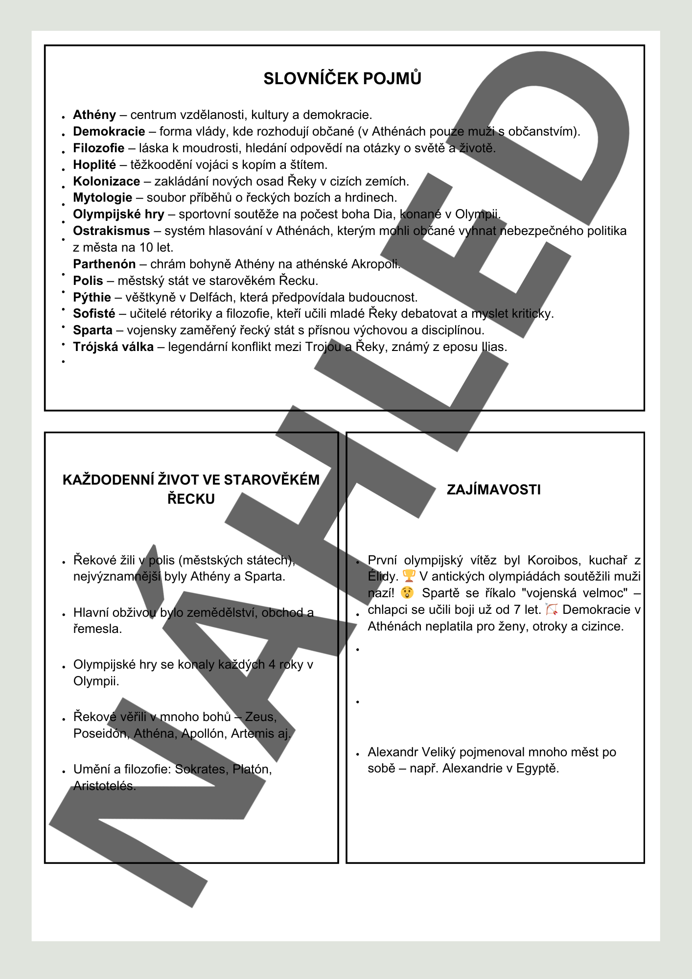 • Přehled dějin starověkého Řecka - slouží žákům k orientaci v látce