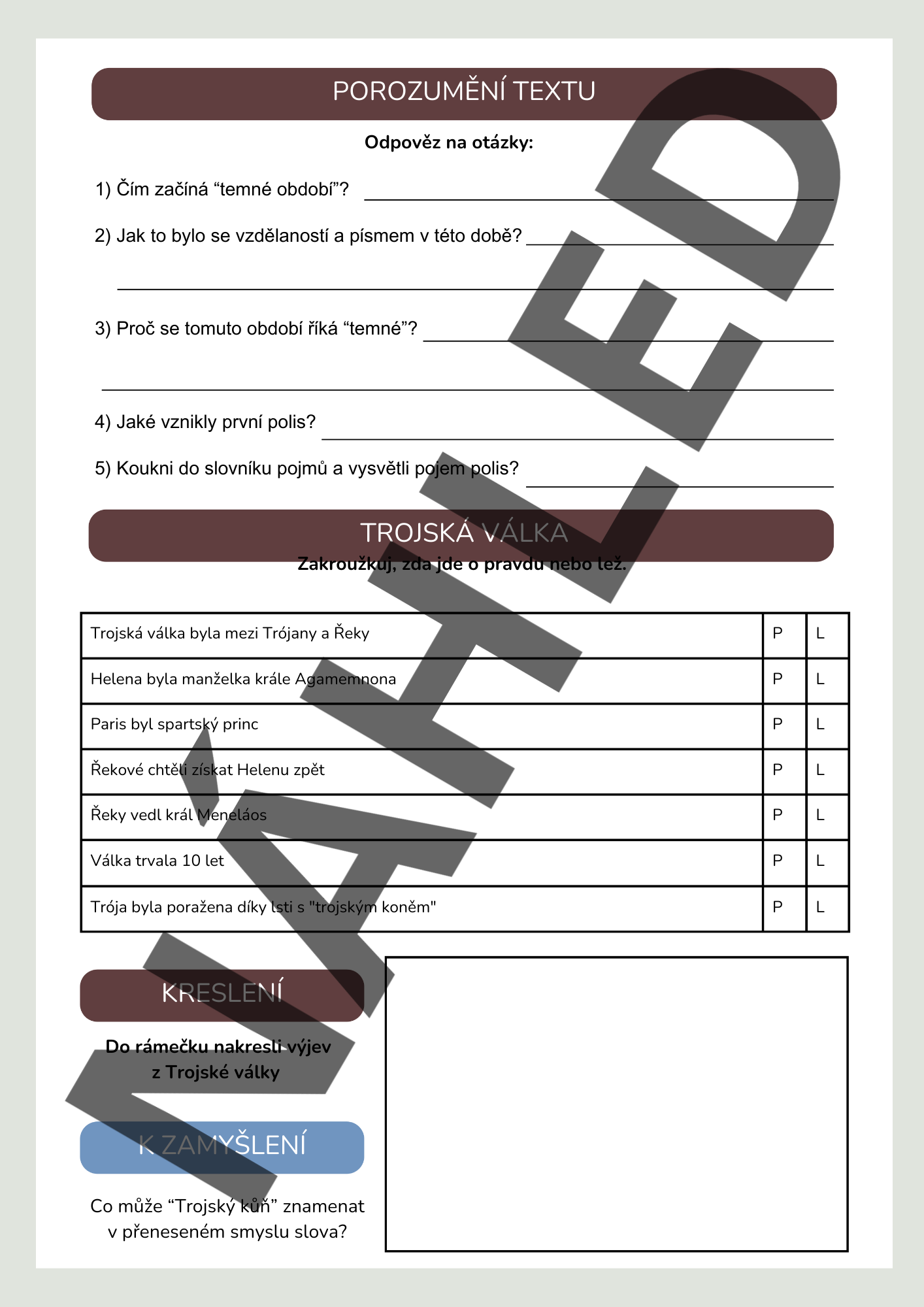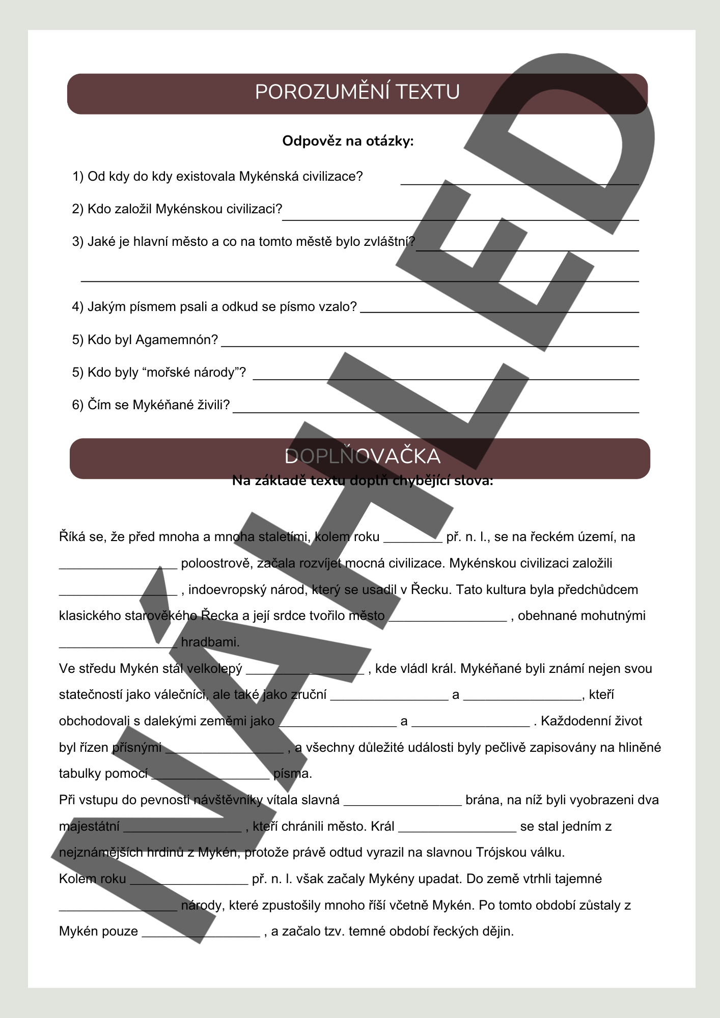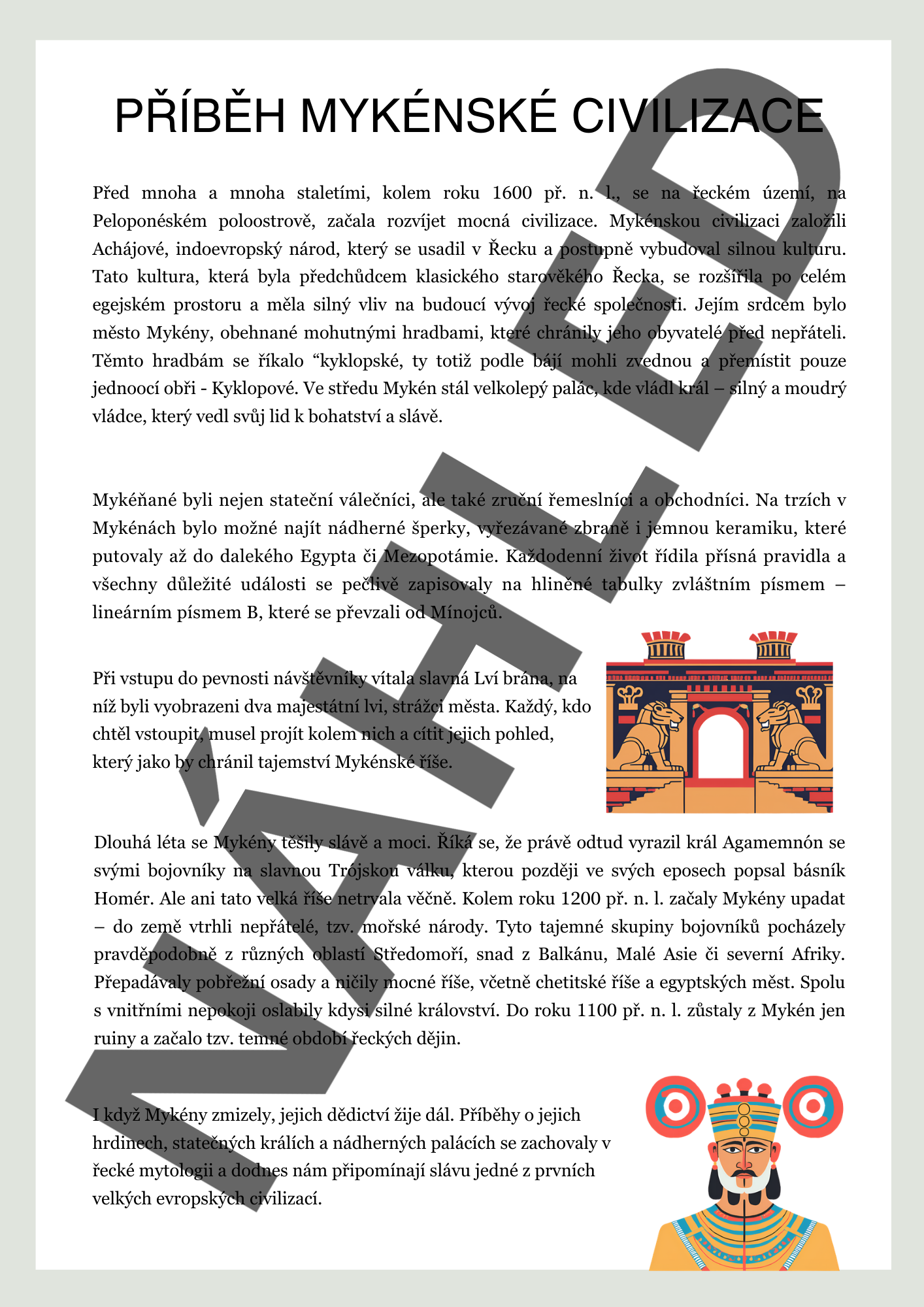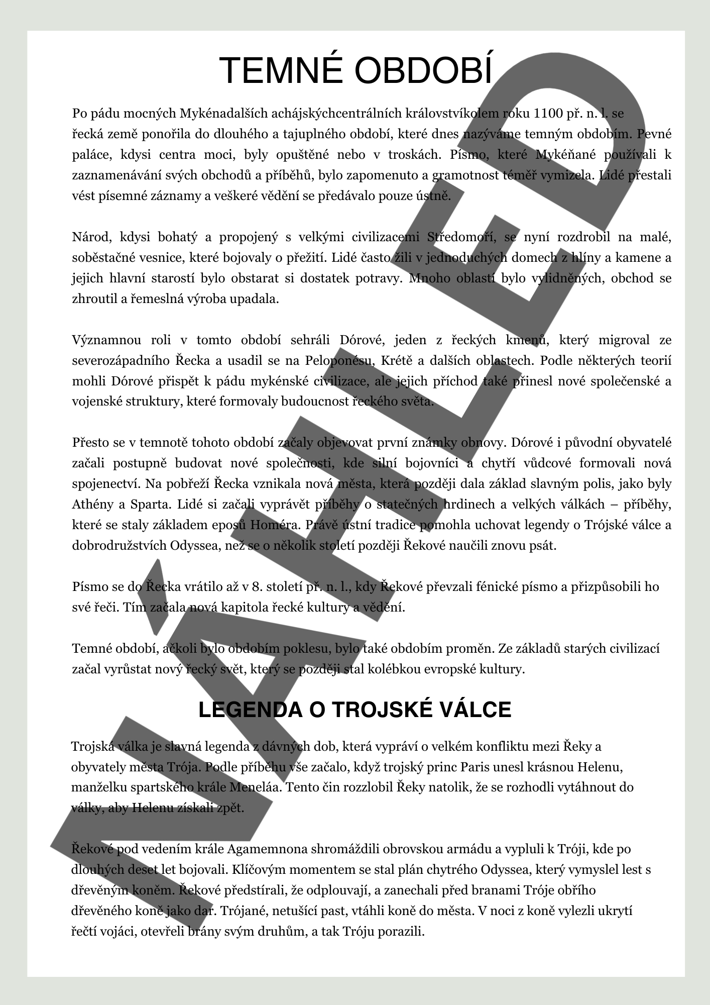 • Textové pasáže: Naučný text o Mykénské civilizaci a "temném období"