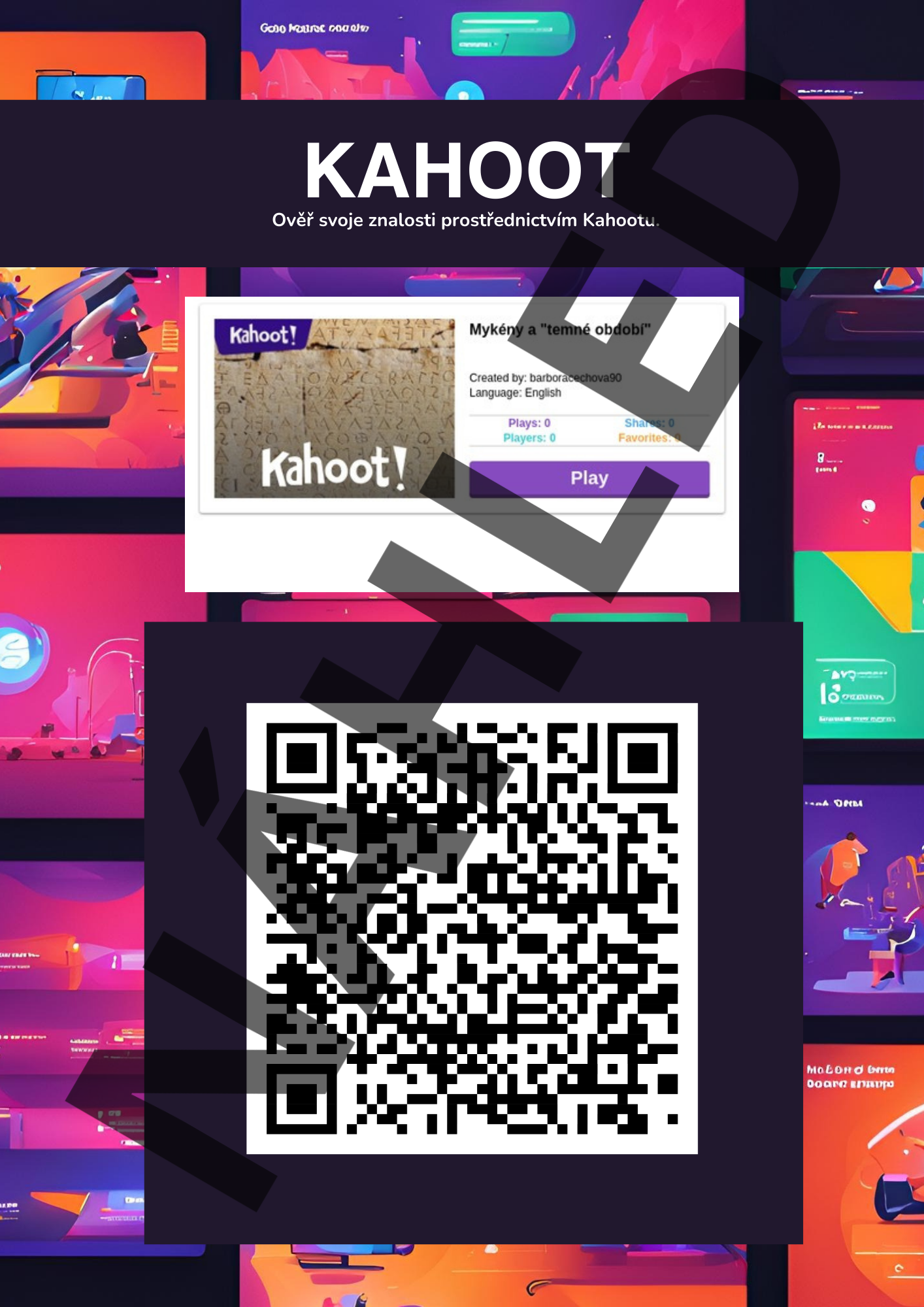Cílem tohoto pracovního listu je seznámit žáky s Mykénskou civilizací a "temným obdobím" starověkého Řecka. Materiál obsahuje mimo textové pasáže a další úkoly, také QR kód na kvíz v Kahootu. Součástí je také přehled dějin starověkého Řecka