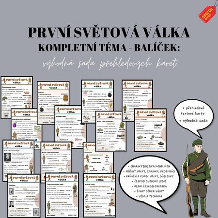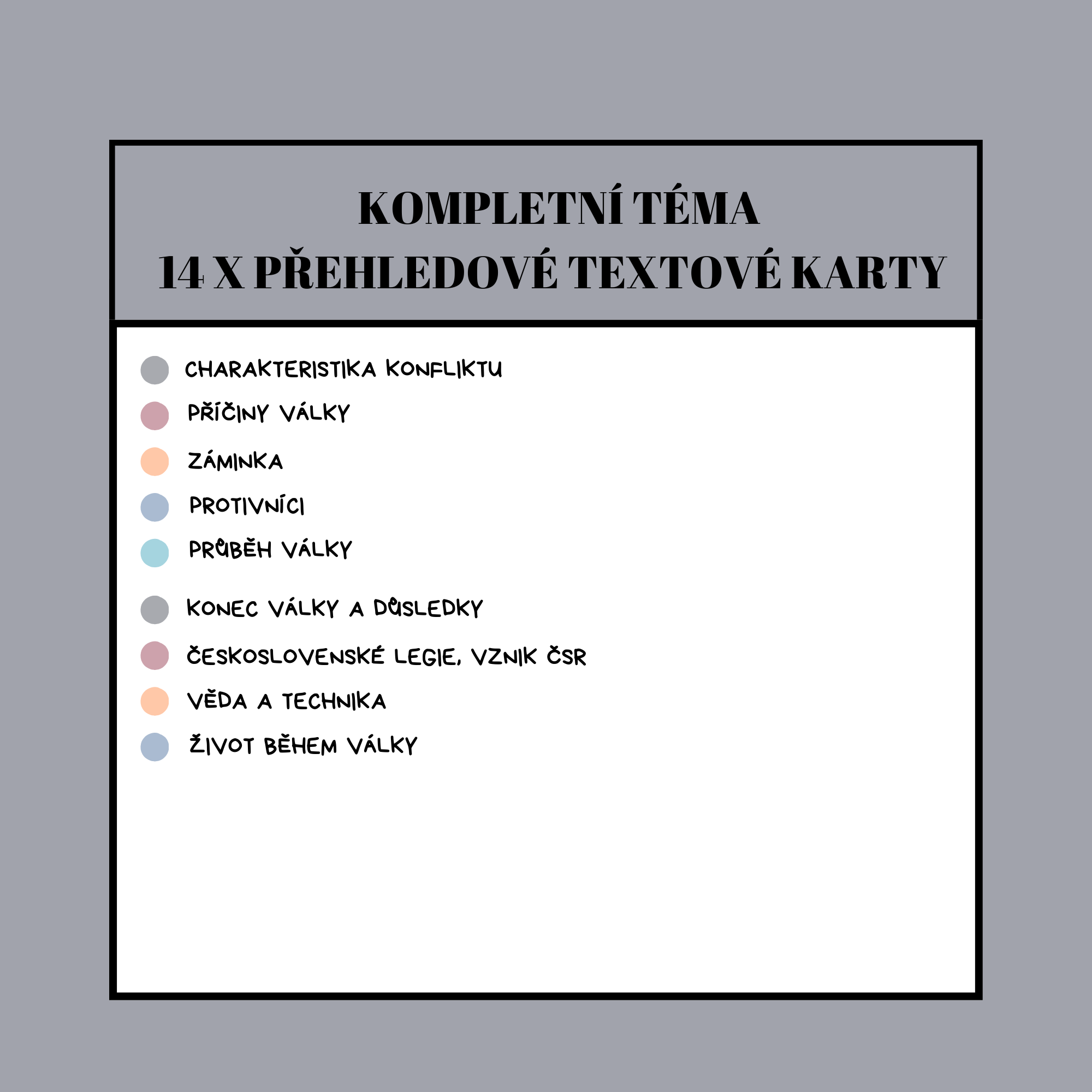 Soubor obsahuje přehledové textové karty, které shrnují dané téma a mají všestranné využití.