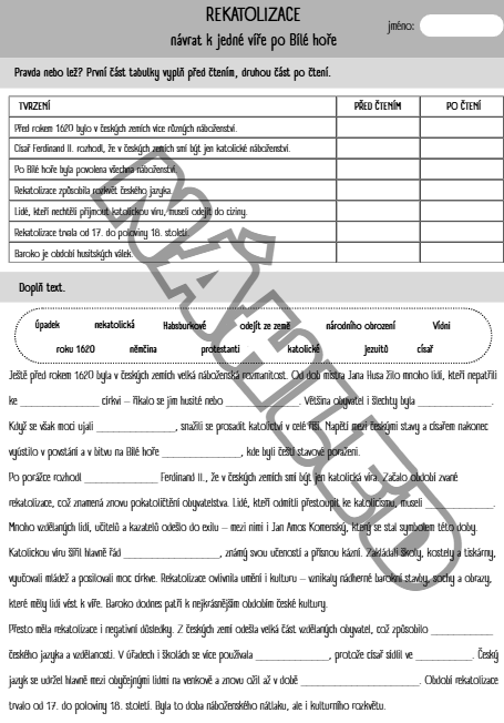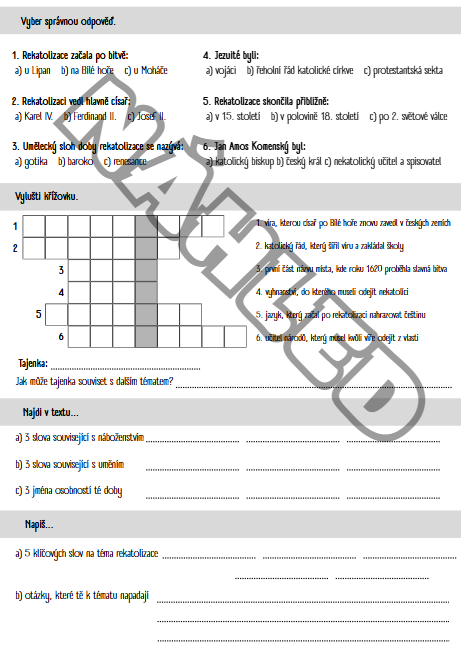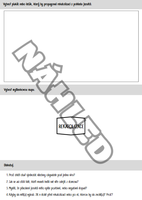 - Tvořivé a reflexní úkoly (klíčová slova, vlastní otázky, plakát z pohledu jezuitů, diskusní otázky, myšlenková mapa)