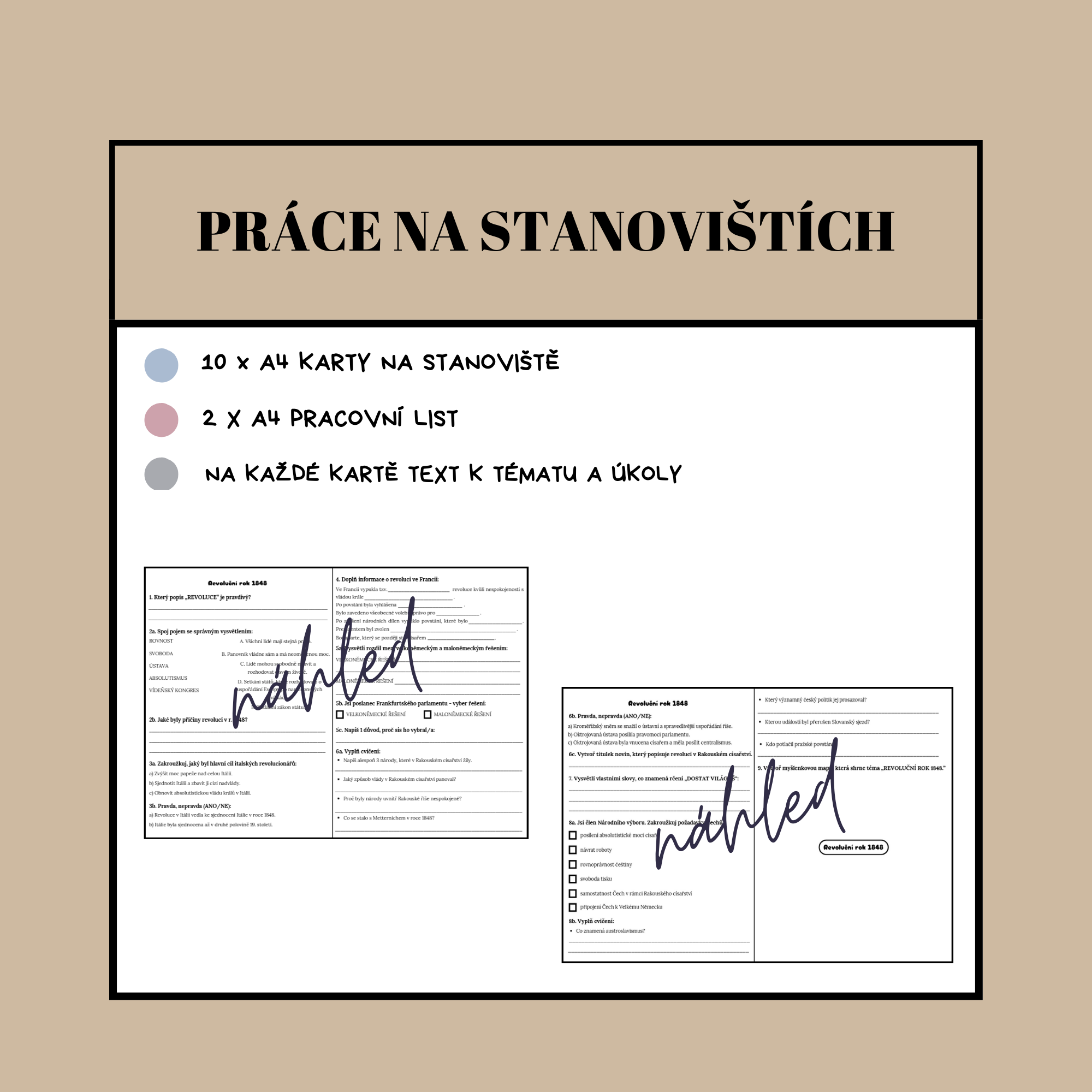 Příklady úkolů: ANO/NE, spojovačka, tvoření titulku novin, volba poslance Frankfurtského sněmu, požadavky člena Národního výboru, myšlenková mapa, kroužkovací kvíz, doplňovačka, přiřazování...
