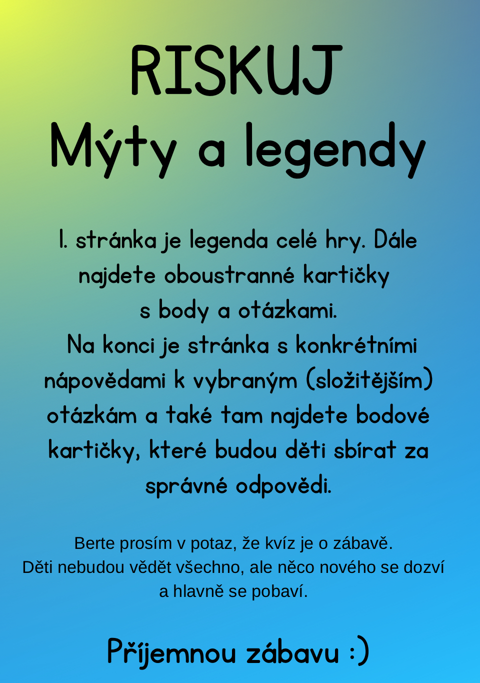 Zábavná hra, určená k odreagování či do družiny, plná opakování a zajímavých informací pro děti. Materiál obsahuje i